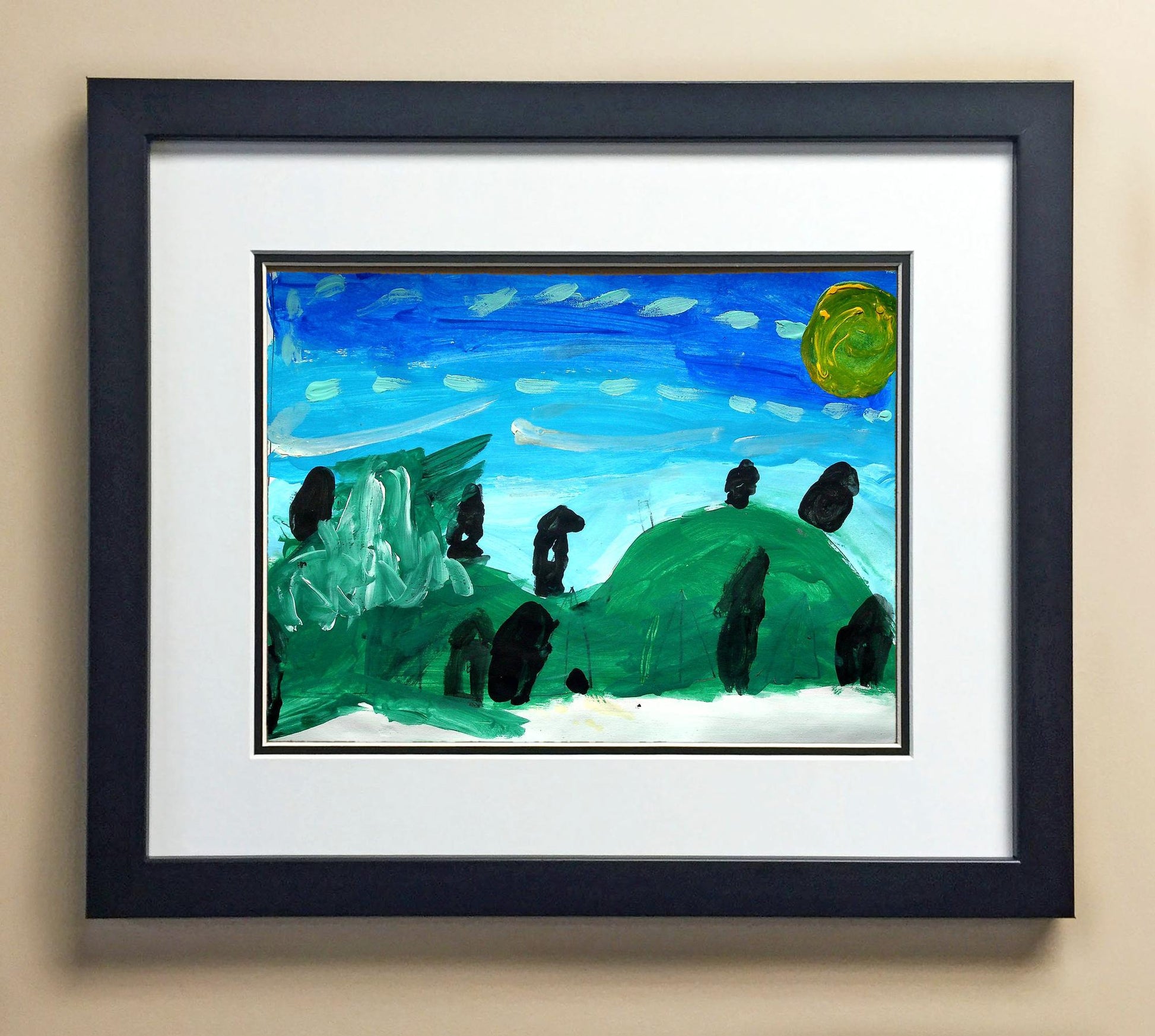 Included with the purchase is the Students Artwork, Frame, double matboard, shatter proof plexiglass, and a ready to hang backerboard with turnbuttons