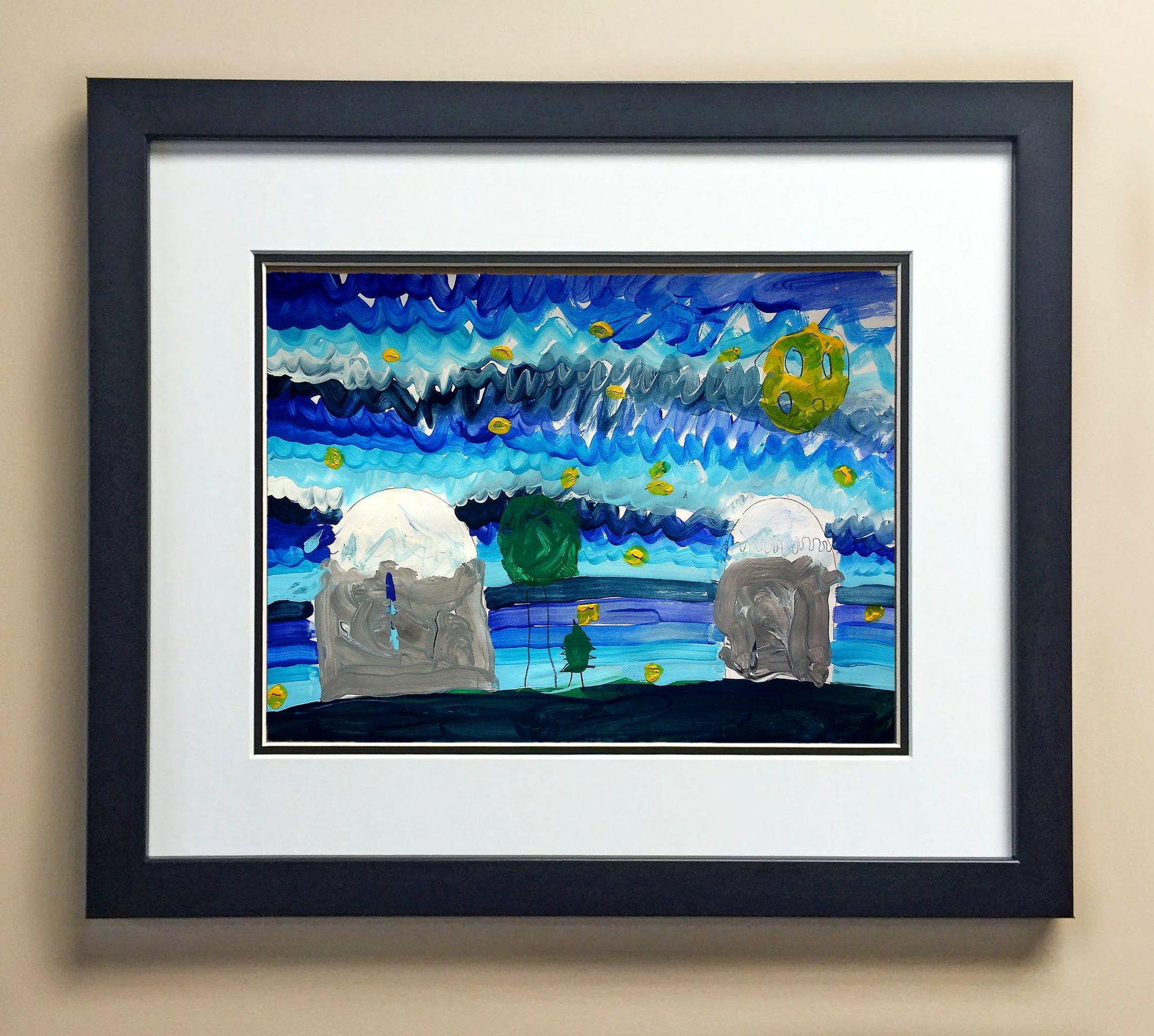 Included with the purchase is the Students Artwork, Frame, double matboard, shatter proof plexiglass, and a ready to hang backerboard with turnbuttons