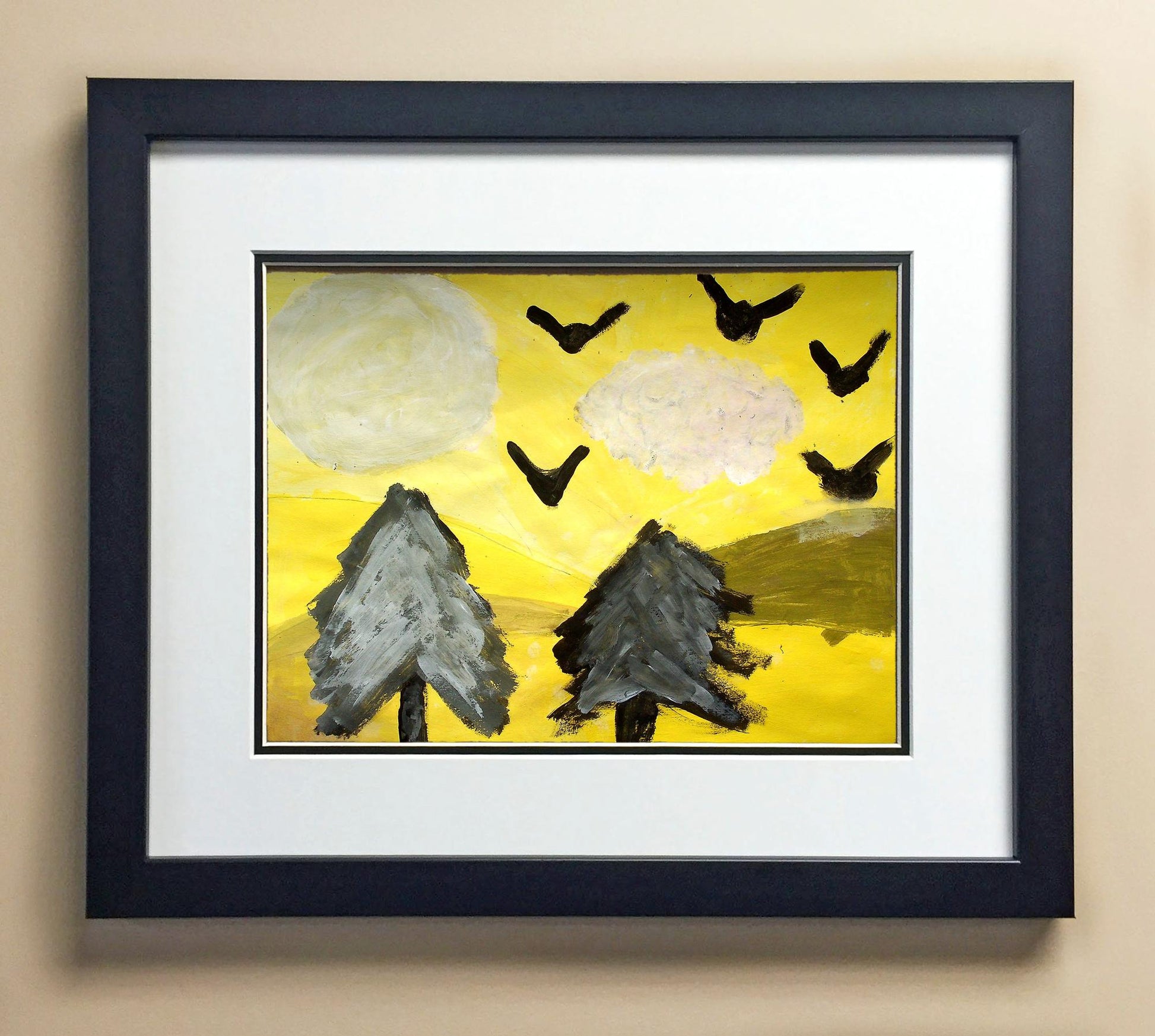Included with the purchase is the Students Artwork, Frame, double matboard, shatter proof plexiglass, and a ready to hang backerboard with turnbuttons