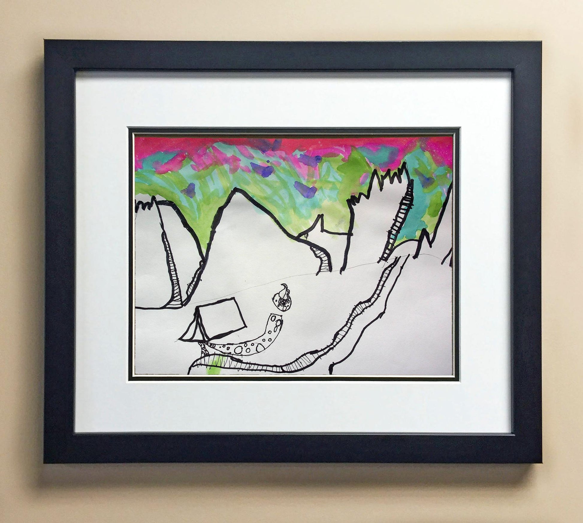 Included with the purchase is the Students Artwork, Frame, double matboard, shatter proof plexiglass, and a ready to hang backerboard with turnbuttons