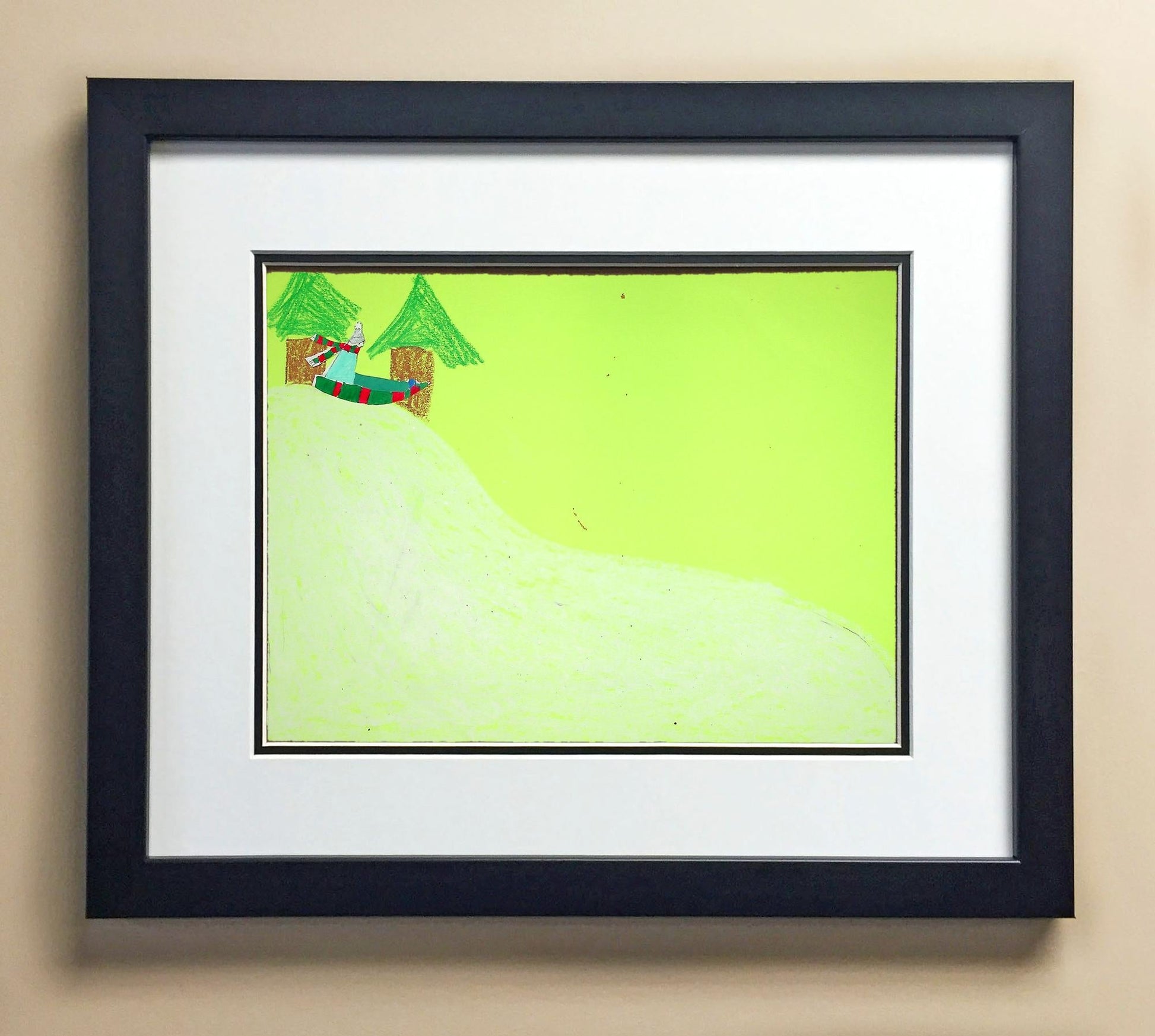 Included with the purchase is the Students Artwork, Frame, double matboard, shatter proof plexiglass, and a ready to hang backerboard with turnbuttons