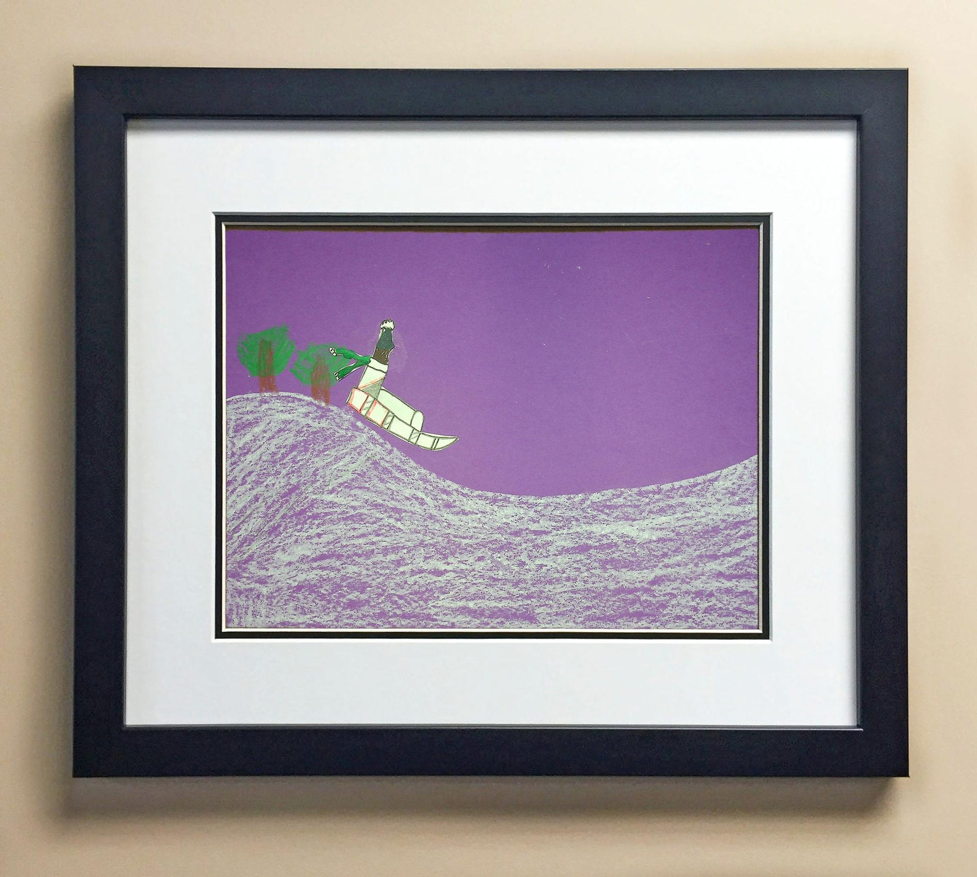 Included with the purchase is the Students Artwork, Frame, double matboard, shatter proof plexiglass, and a ready to hang backerboard with turnbuttons