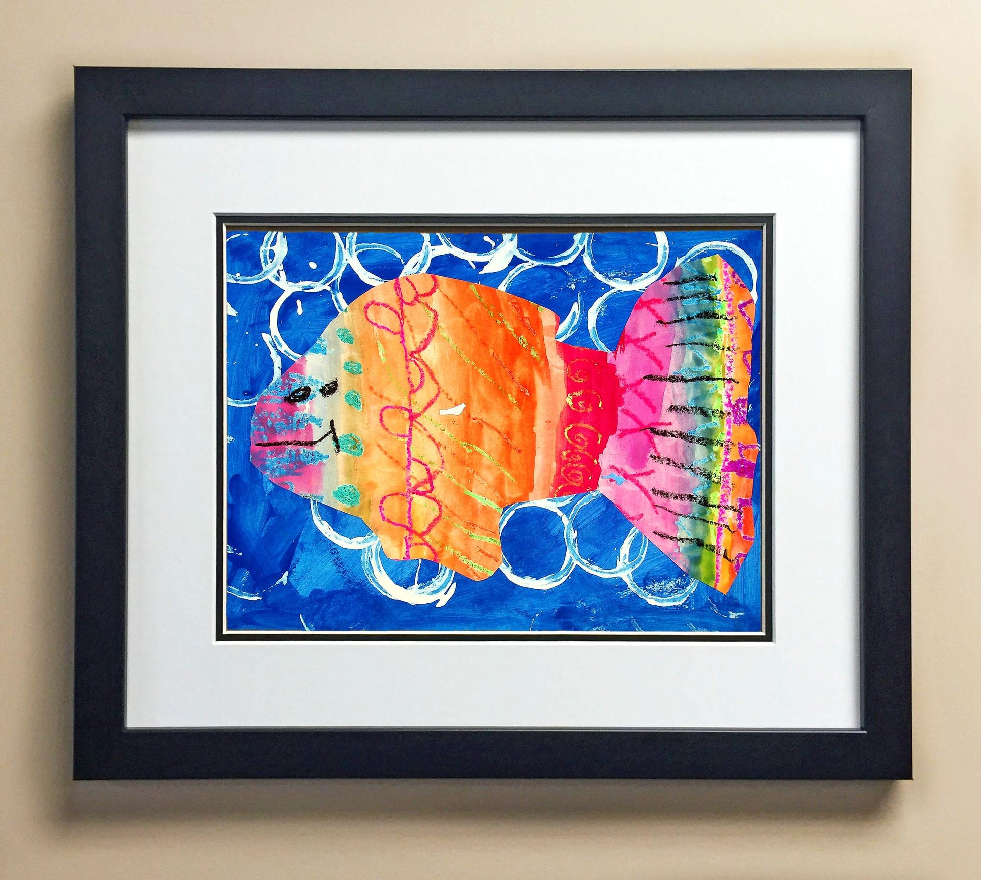Included with the purchase is the Students Artwork, Frame, double matboard, shatter proof plexiglass, and a ready to hang backerboard with turnbuttons