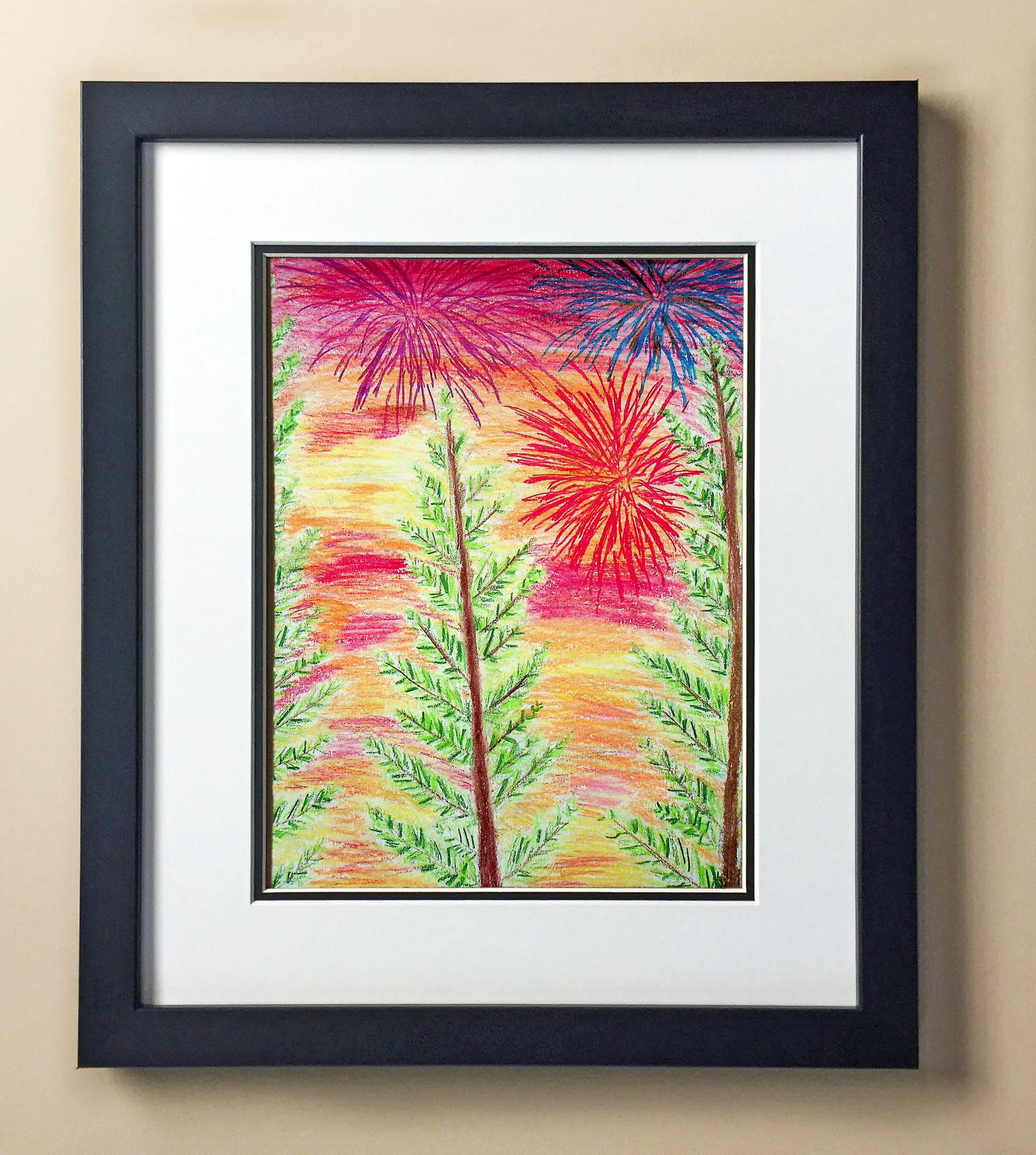 Included with the purchase is the Students Artwork, Frame, double matboard, shatter proof plexiglass, and a ready to hang backerboard with turnbuttons