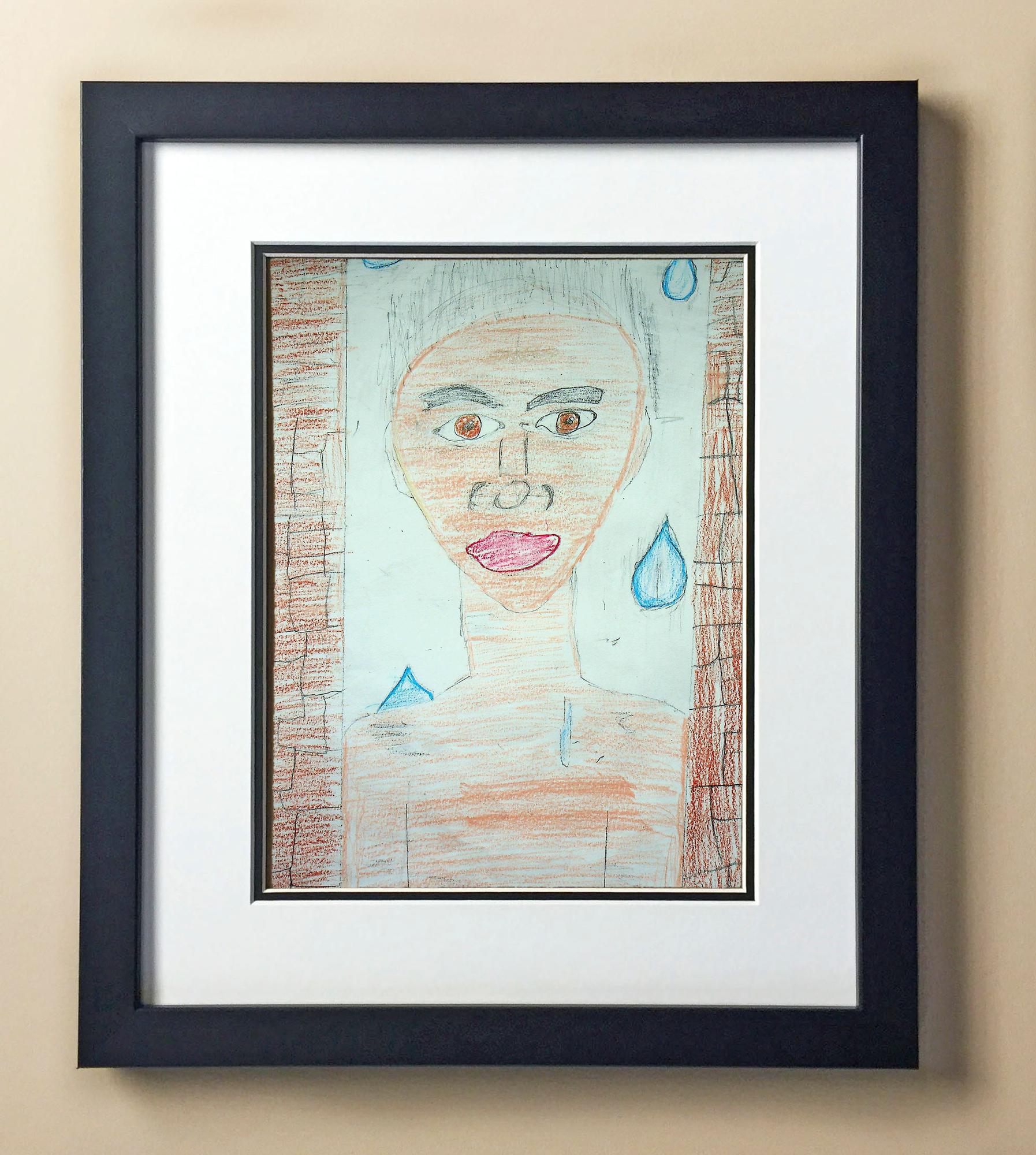 Included with the purchase is the Students Artwork, Frame, double matboard, shatter proof plexiglass, and a ready to hang backerboard with turnbuttons