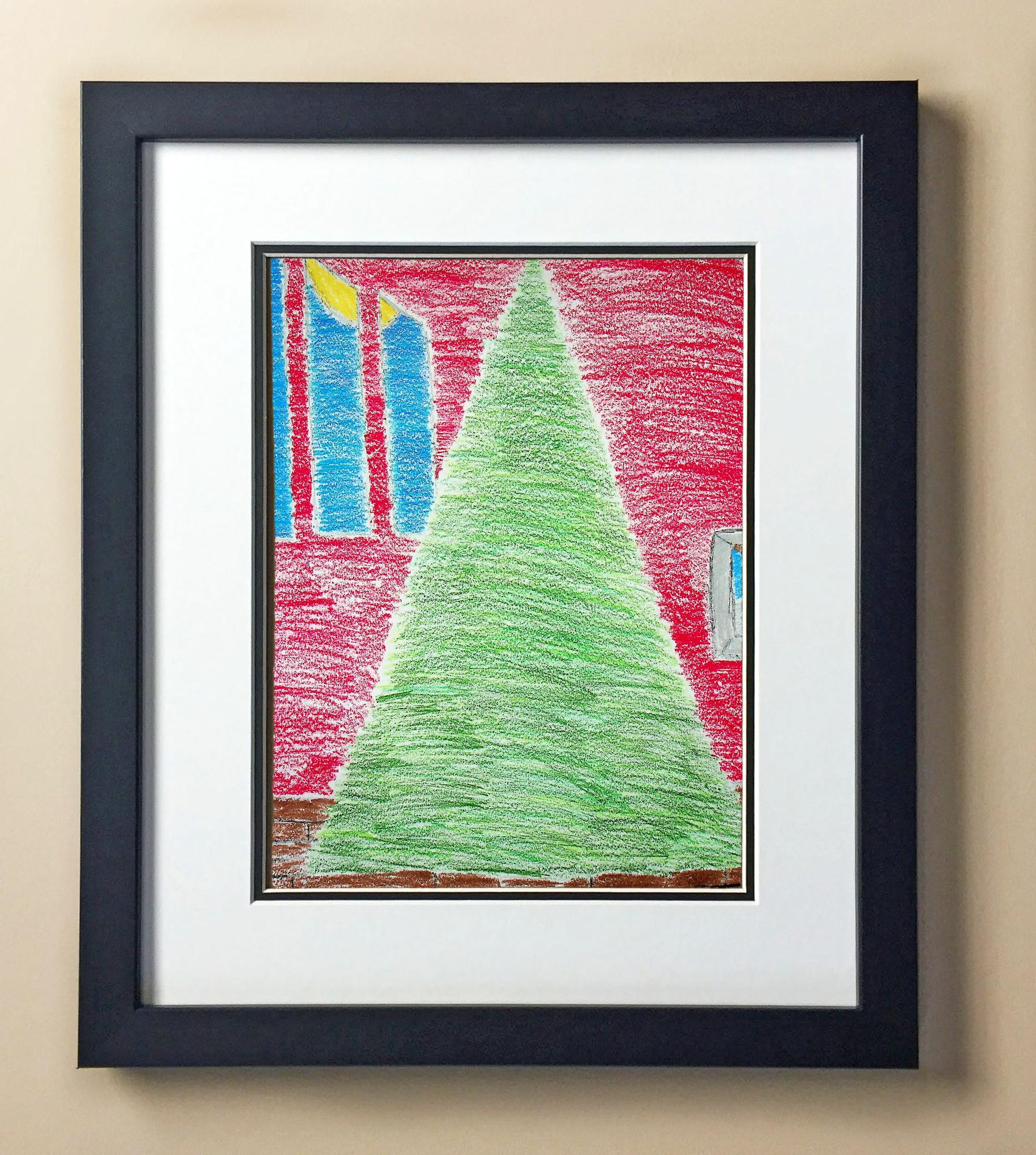 Included with the purchase is the Students Artwork, Frame, double matboard, shatter proof plexiglass, and a ready to hang backerboard with turnbuttons