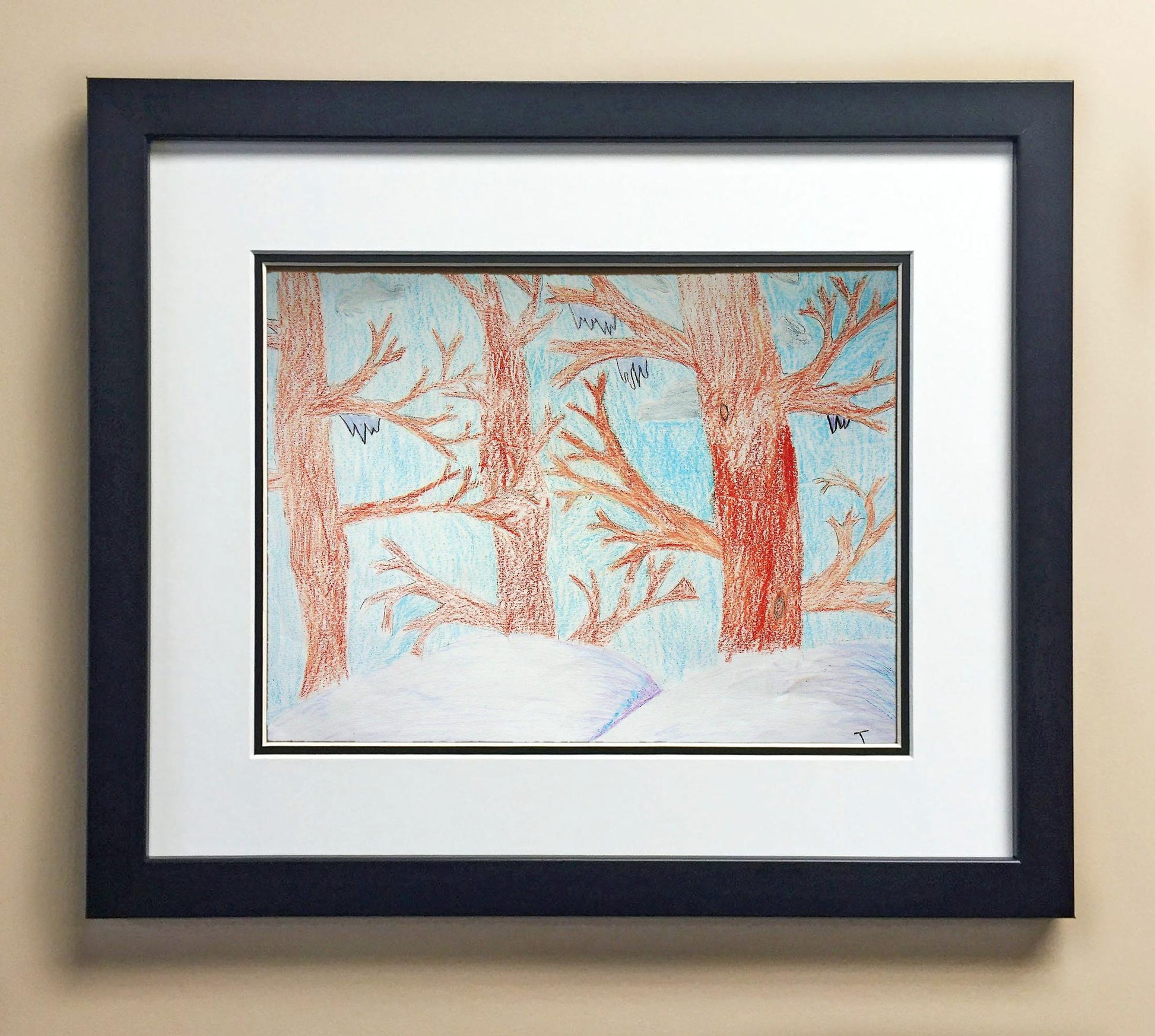 Included with the purchase is the Students Artwork, Frame, double matboard, shatter proof plexiglass, and a ready to hang backerboard with turnbuttons