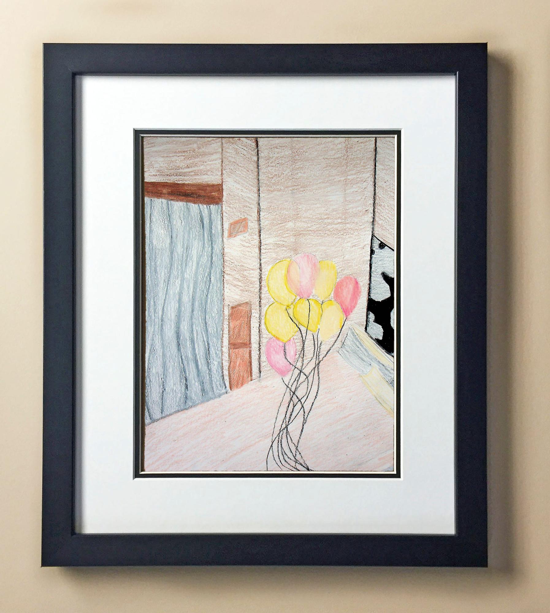 Included with the purchase is the Students Artwork, Frame, double matboard, shatter proof plexiglass, and a ready to hang backerboard with turnbuttons