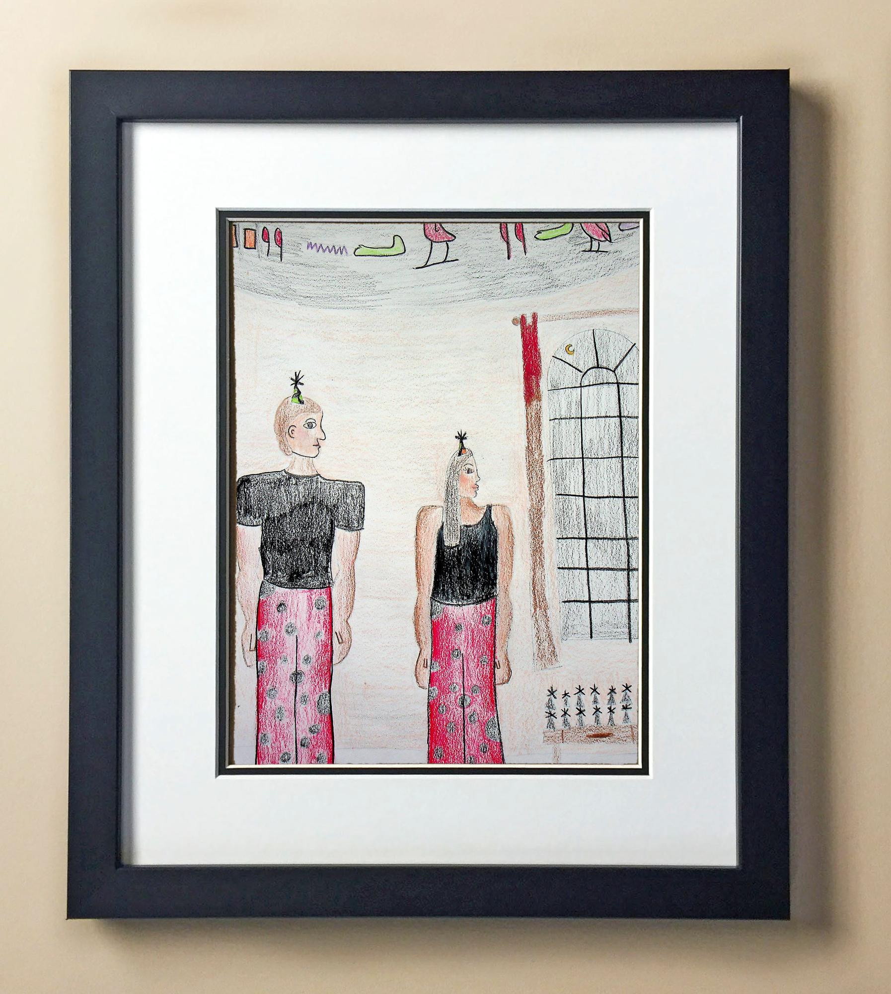 Included with the purchase is the Students Artwork, Frame, double matboard, shatter proof plexiglass, and a ready to hang backerboard with turnbuttons