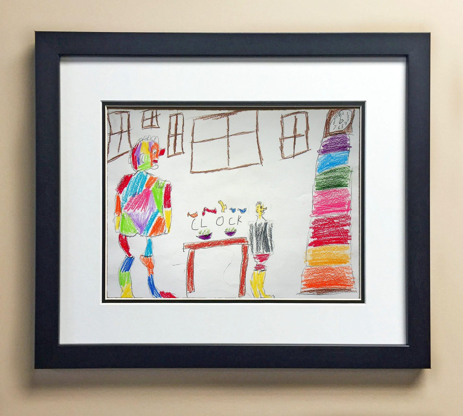 Included with the purchase is the Students Artwork, Frame, double matboard, shatter proof plexiglass, and a ready to hang backerboard with turnbuttons