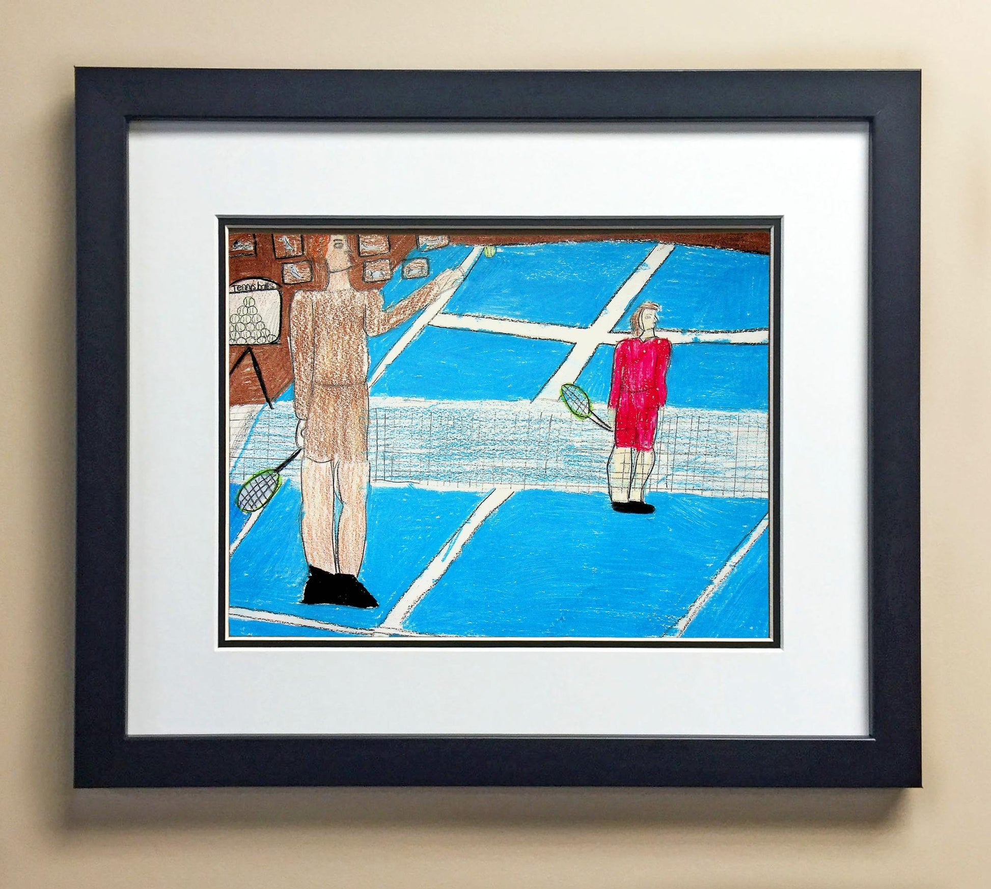 Included with the purchase is the Students Artwork, Frame, double matboard, shatter proof plexiglass, and a ready to hang backerboard with turnbuttons