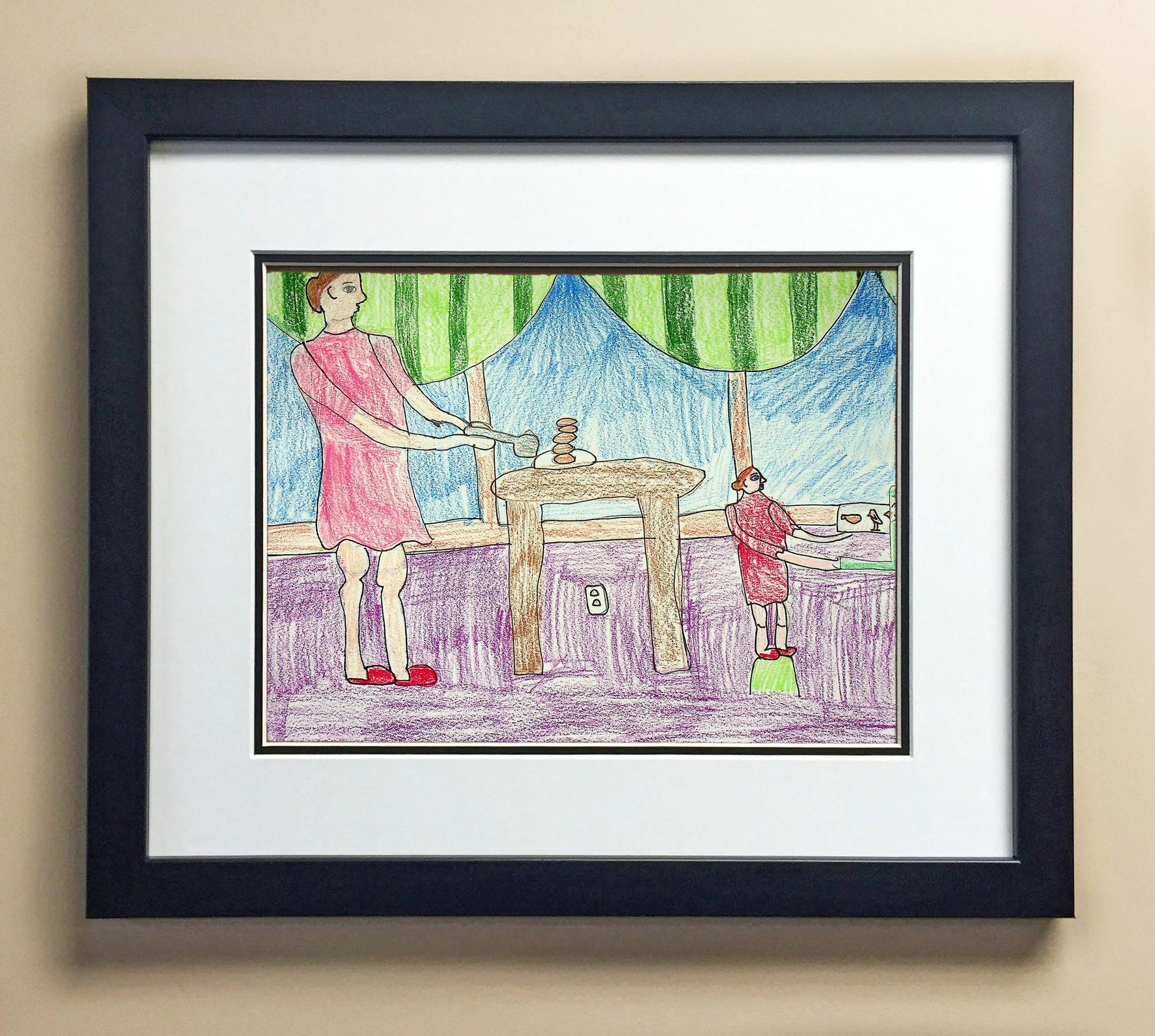 Included with the purchase is the Students Artwork, Frame, double matboard, shatter proof plexiglass, and a ready to hang backerboard with turnbuttons