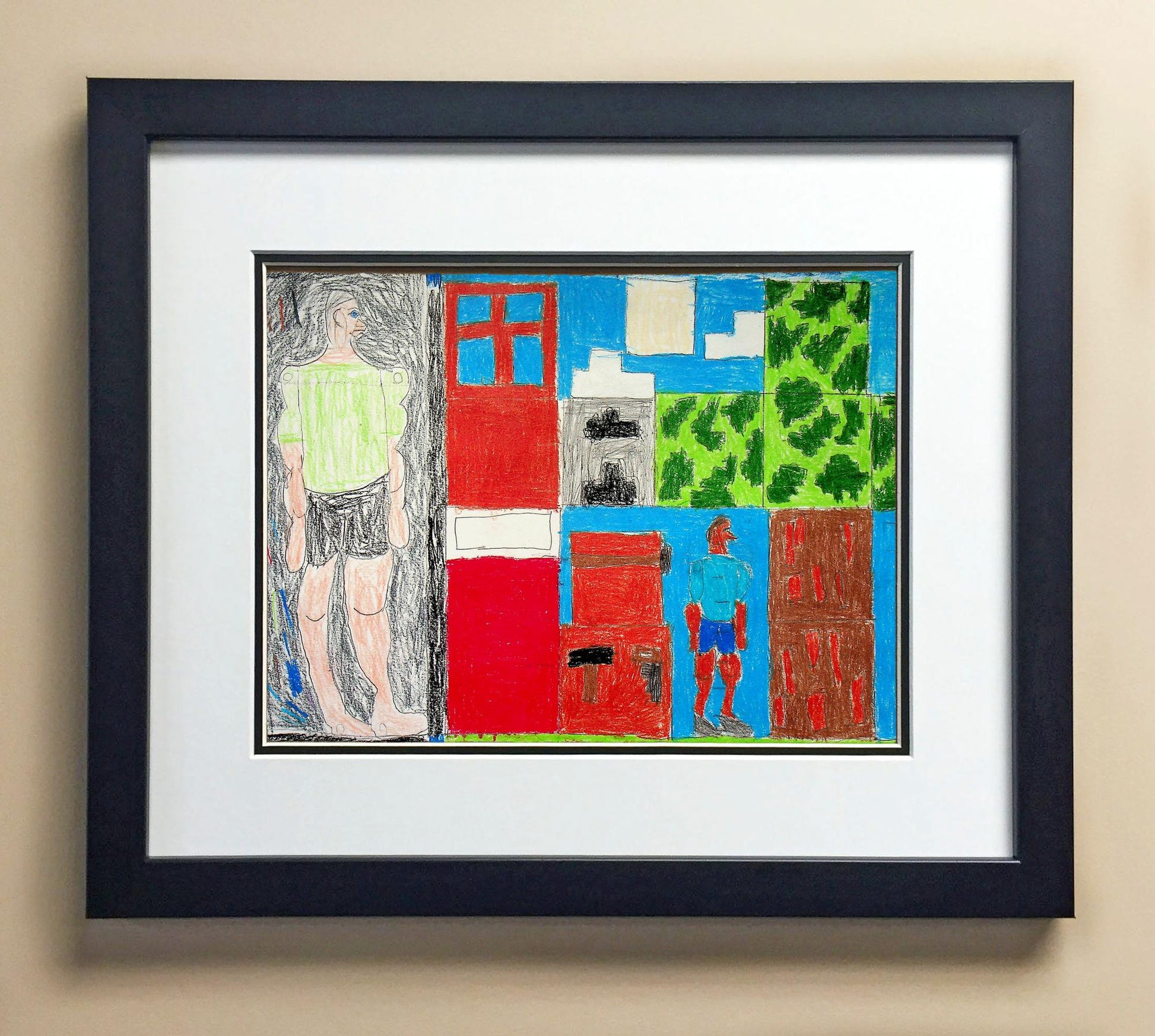 Included with the purchase is the Students Artwork, Frame, double matboard, shatter proof plexiglass, and a ready to hang backerboard with turnbuttons