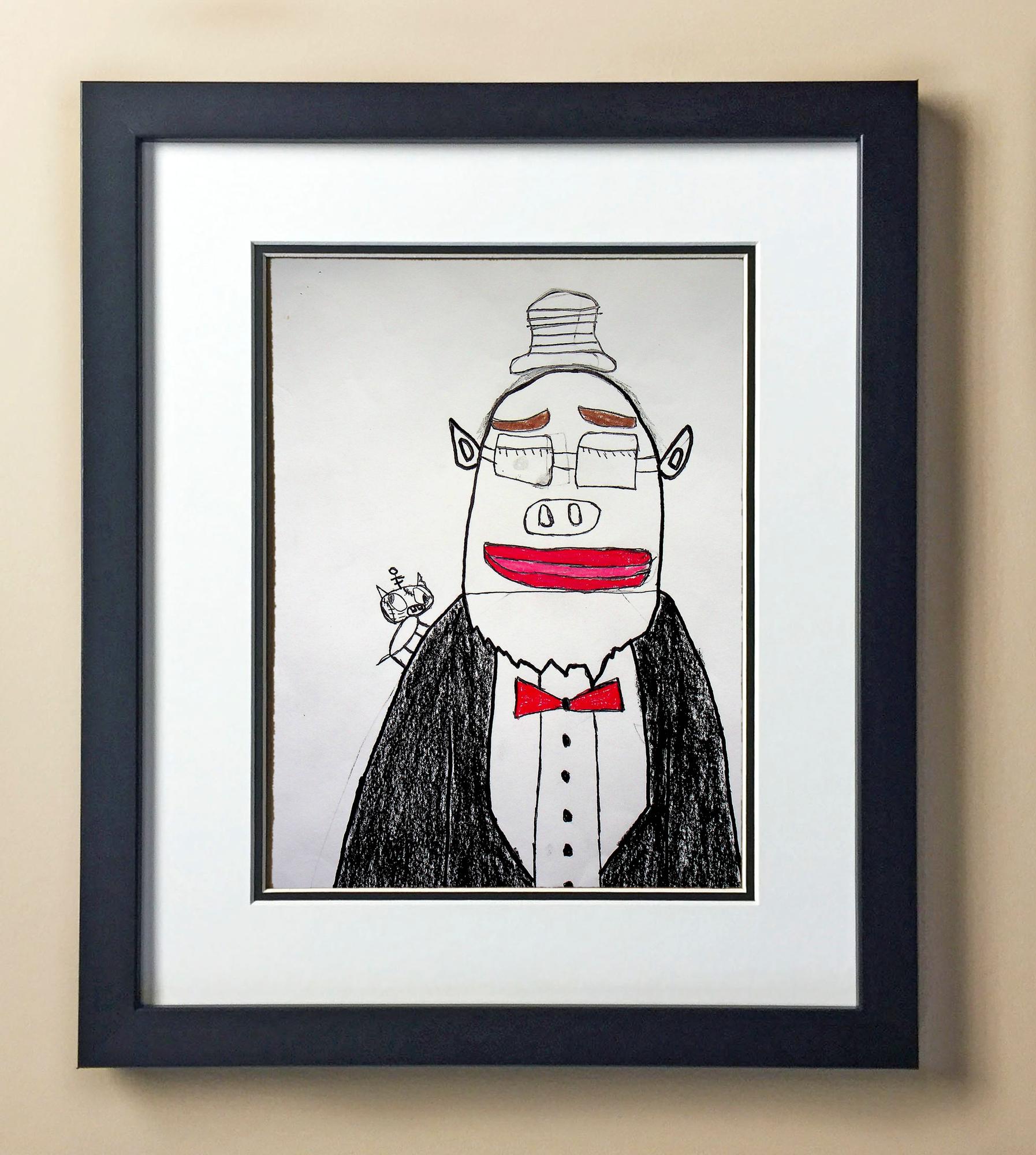 Included with the purchase is the Students Artwork, Frame, double matboard, shatter proof plexiglass, and a ready to hang backerboard with turnbuttons