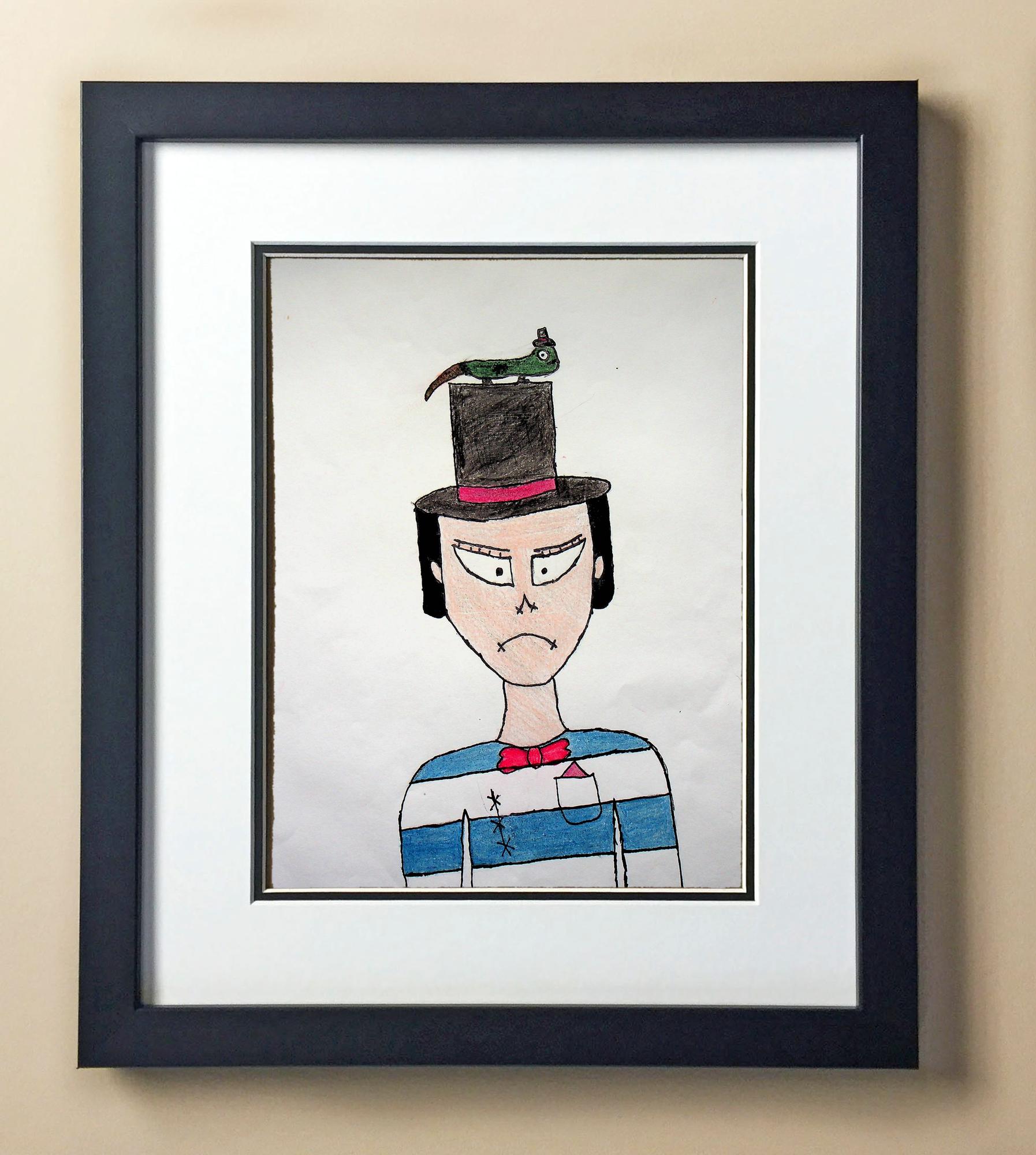 Included with the purchase is the Students Artwork, Frame, double matboard, shatter proof plexiglass, and a ready to hang backerboard with turnbuttons