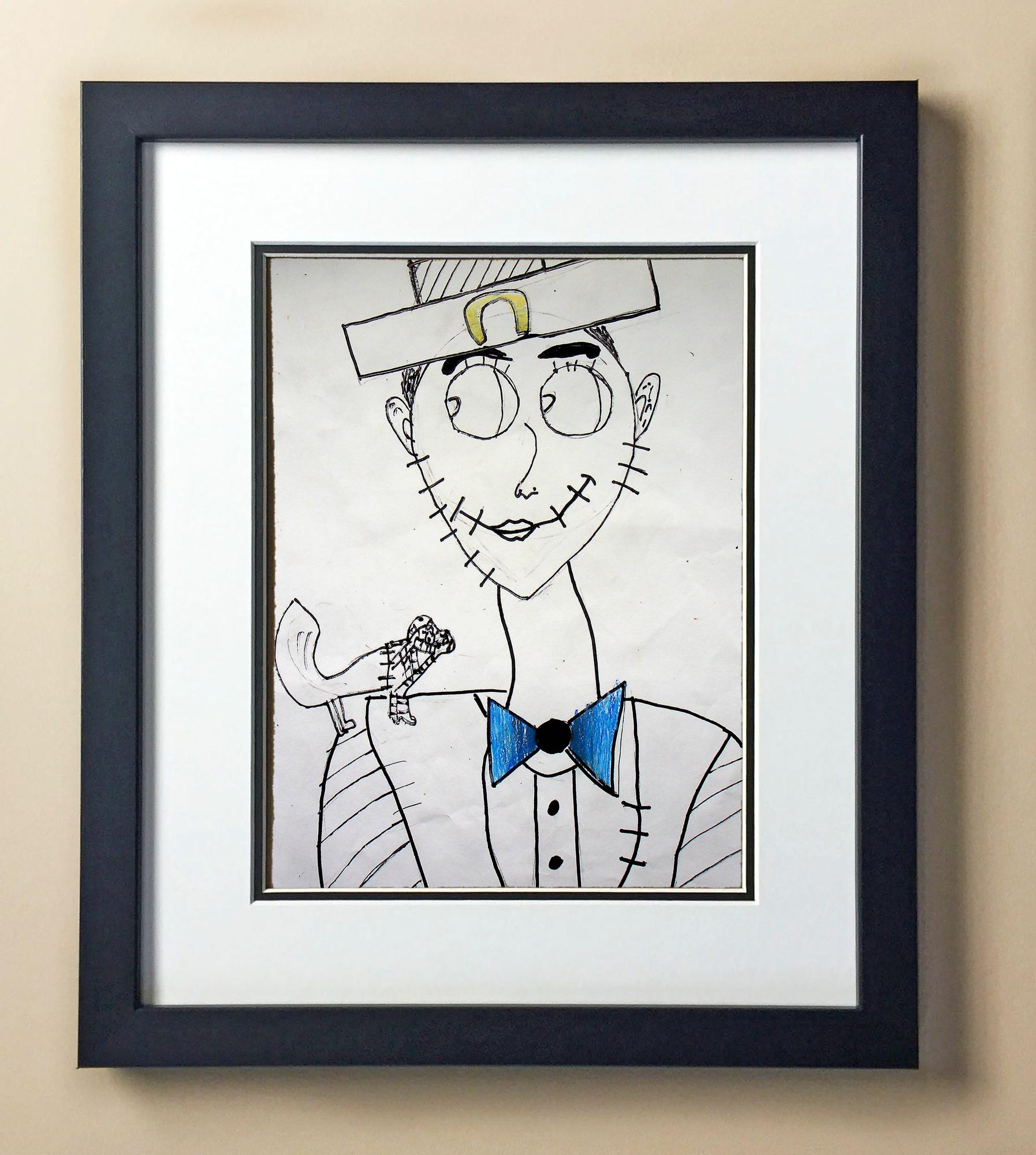 Included with the purchase is the Students Artwork, Frame, double matboard, shatter proof plexiglass, and a ready to hang backerboard with turnbuttons