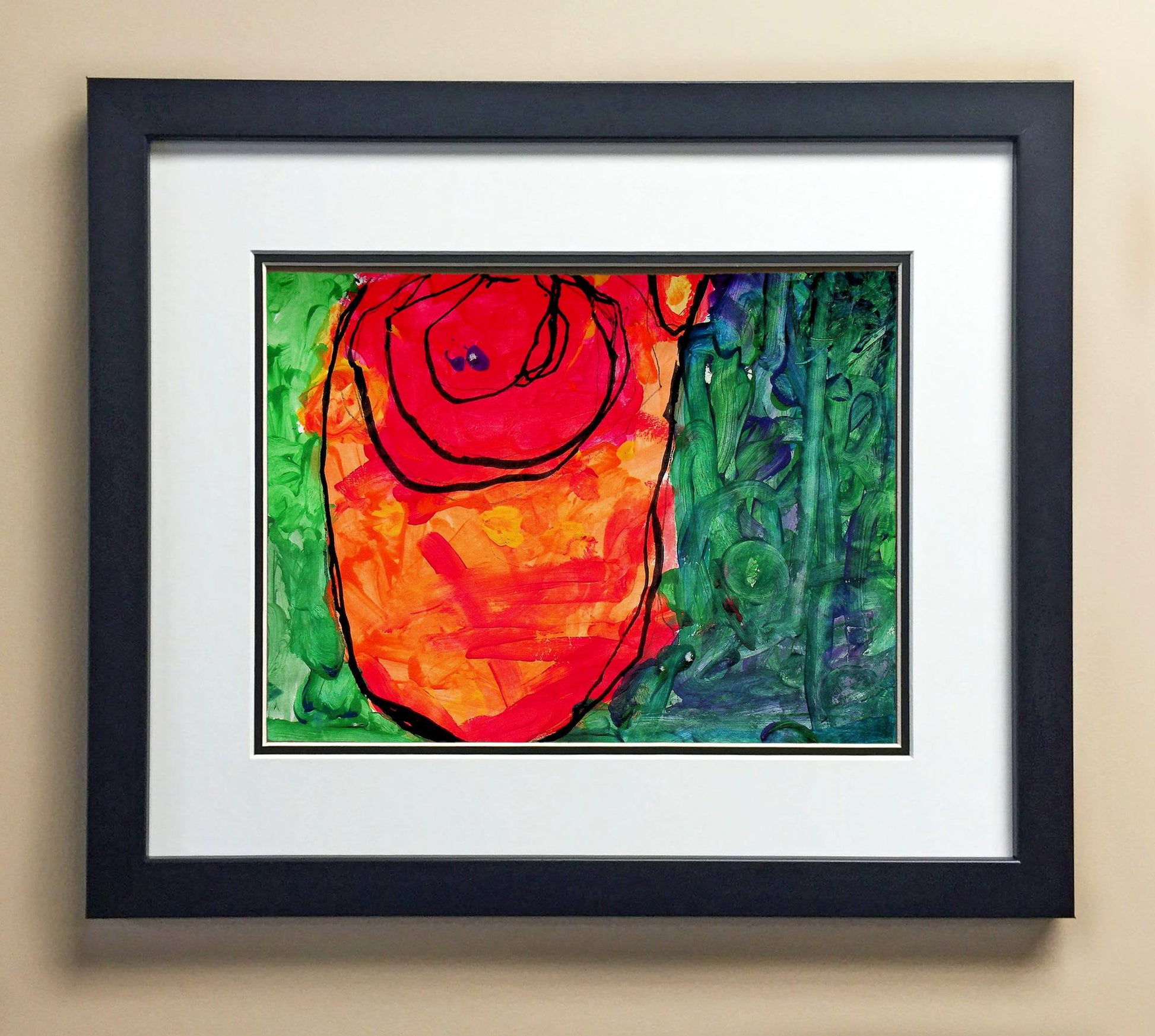Included with the purchase is the Students Artwork, Frame, double matboard, shatter proof plexiglass, and a ready to hang backerboard with turnbuttons