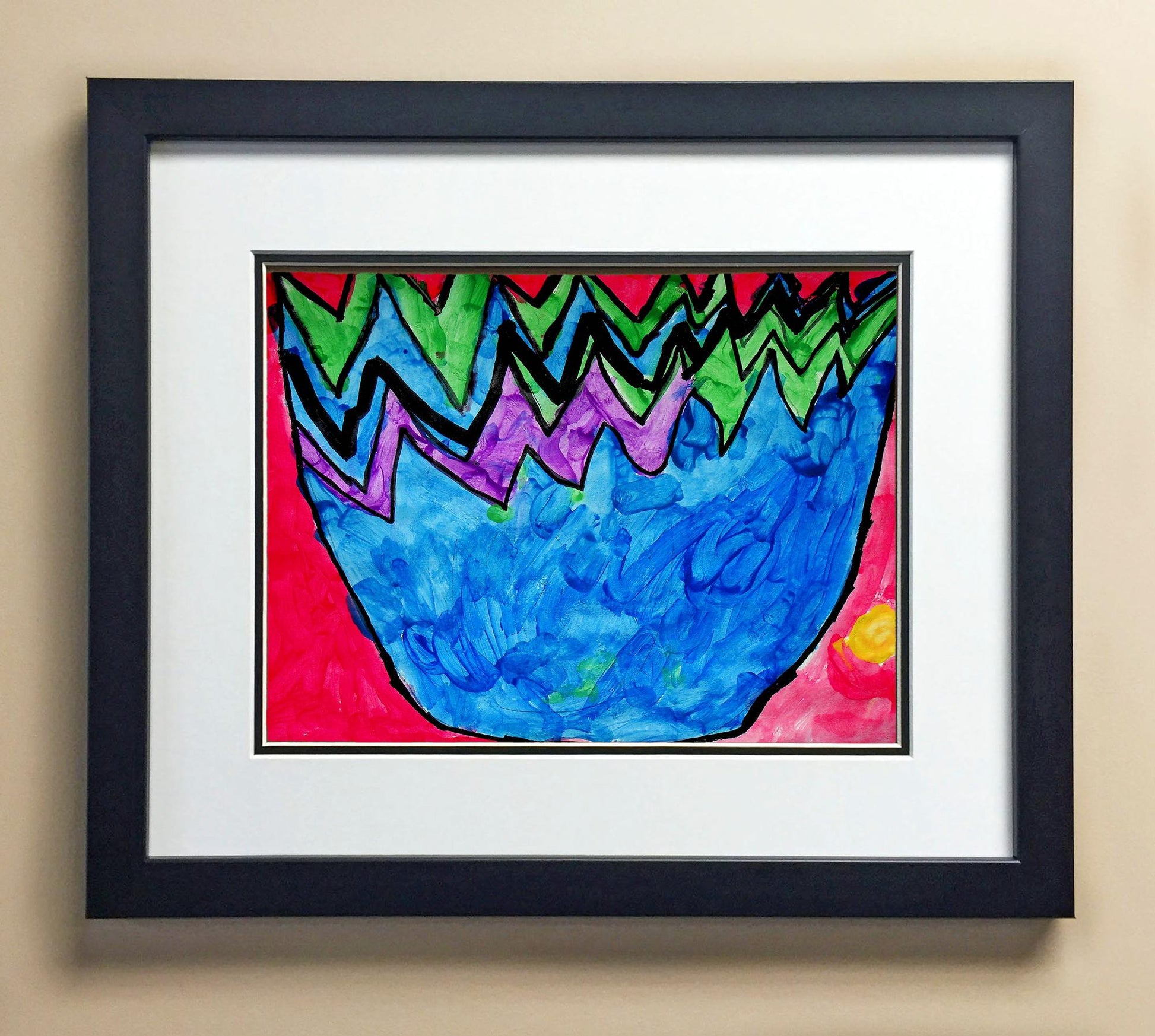 Included with the purchase is the Students Artwork, Frame, double matboard, shatter proof plexiglass, and a ready to hang backerboard with turnbuttons