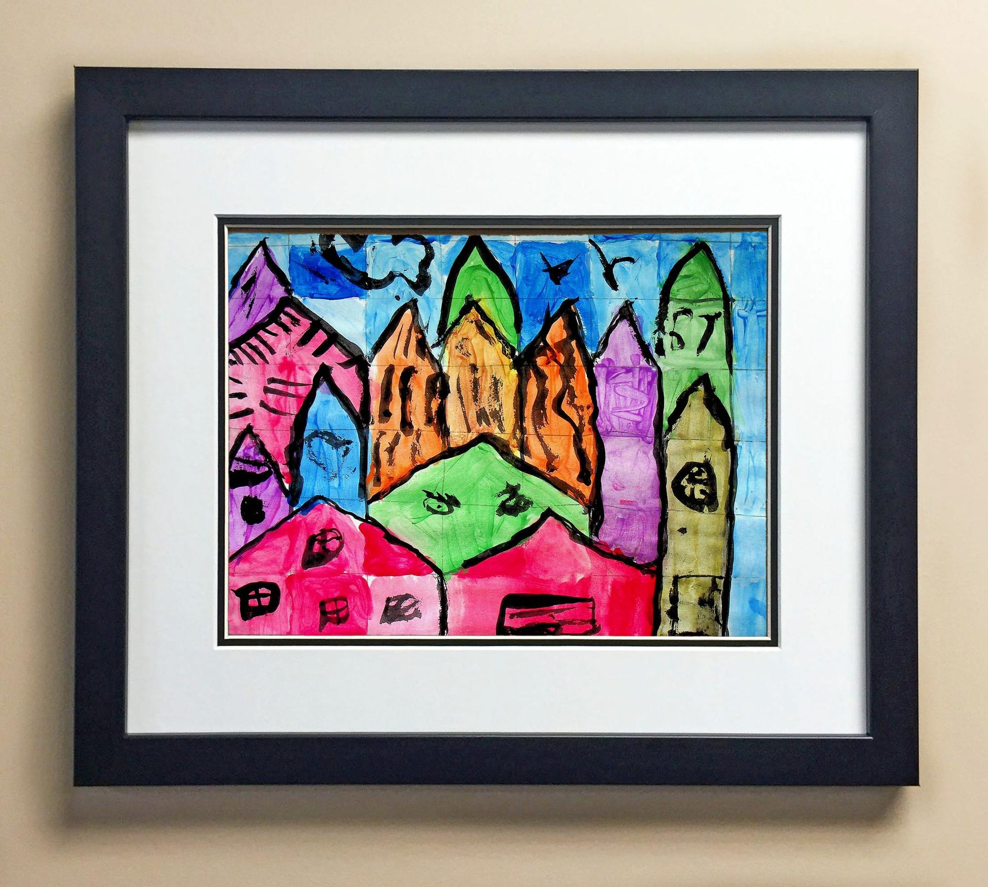 Included with the purchase is the Students Artwork, Frame, double matboard, shatter proof plexiglass, and a ready to hang backerboard with turnbuttons