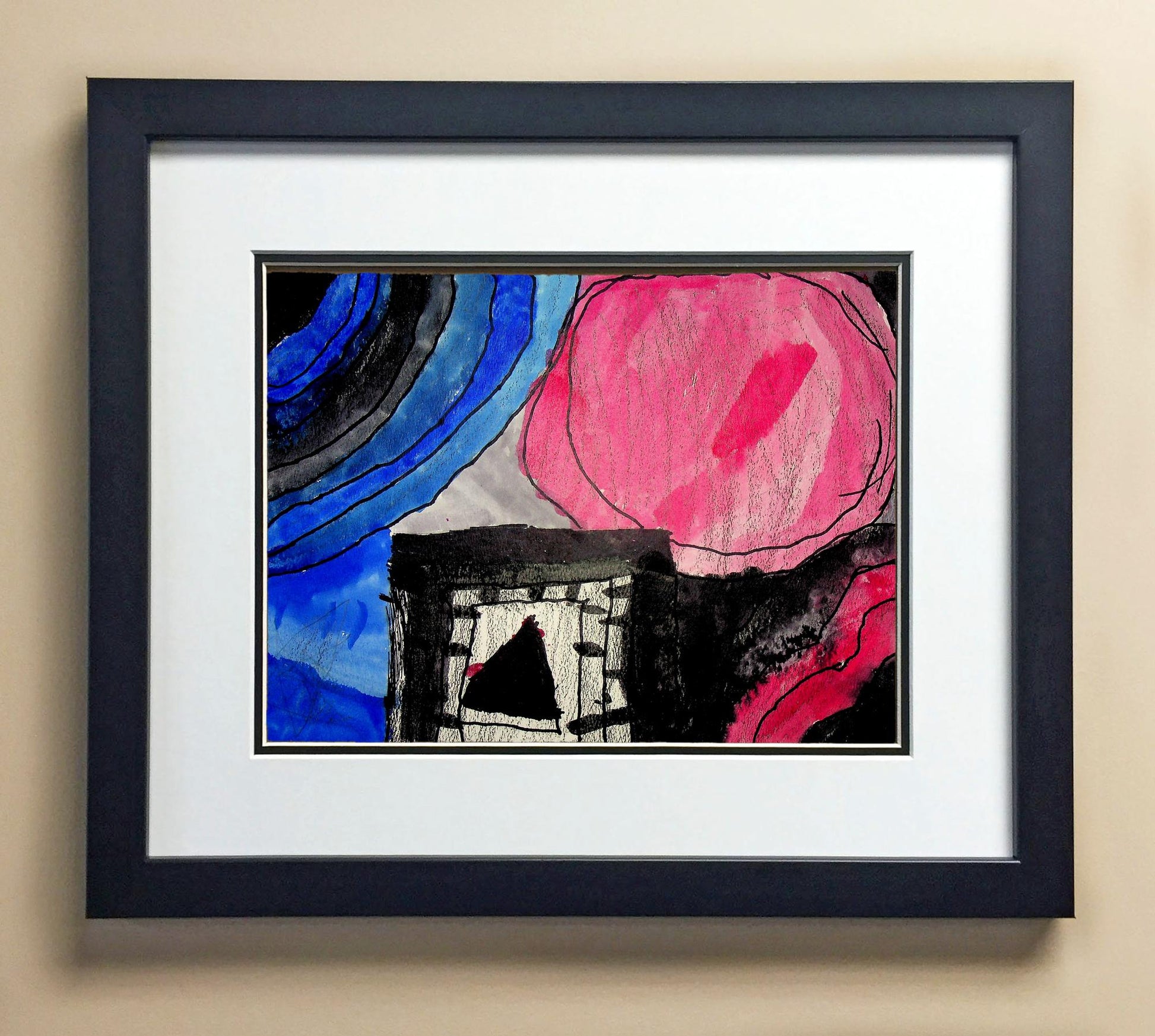 Included with the purchase is the Students Artwork, Frame, double matboard, shatter proof plexiglass, and a ready to hang backerboard with turnbuttons