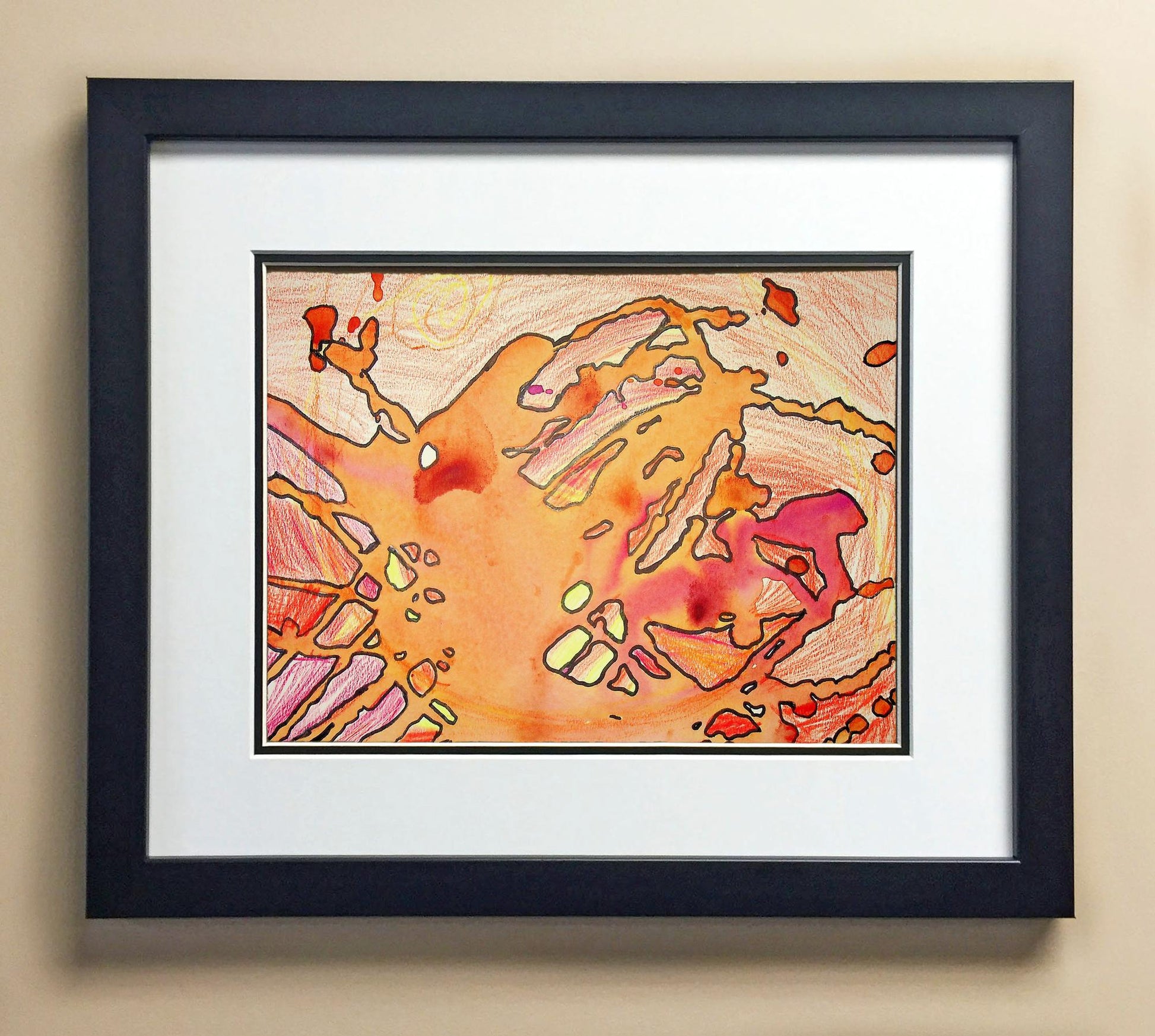 Included with the purchase is the Students Artwork, Frame, double matboard, shatter proof plexiglass, and a ready to hang backerboard with turnbuttons
