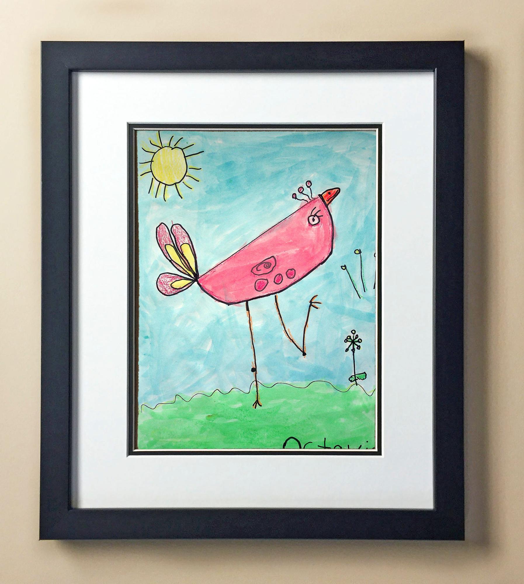 Included with the purchase is the Students Artwork, Frame, double matboard, shatter proof plexiglass, and a ready to hang backerboard with turnbuttons