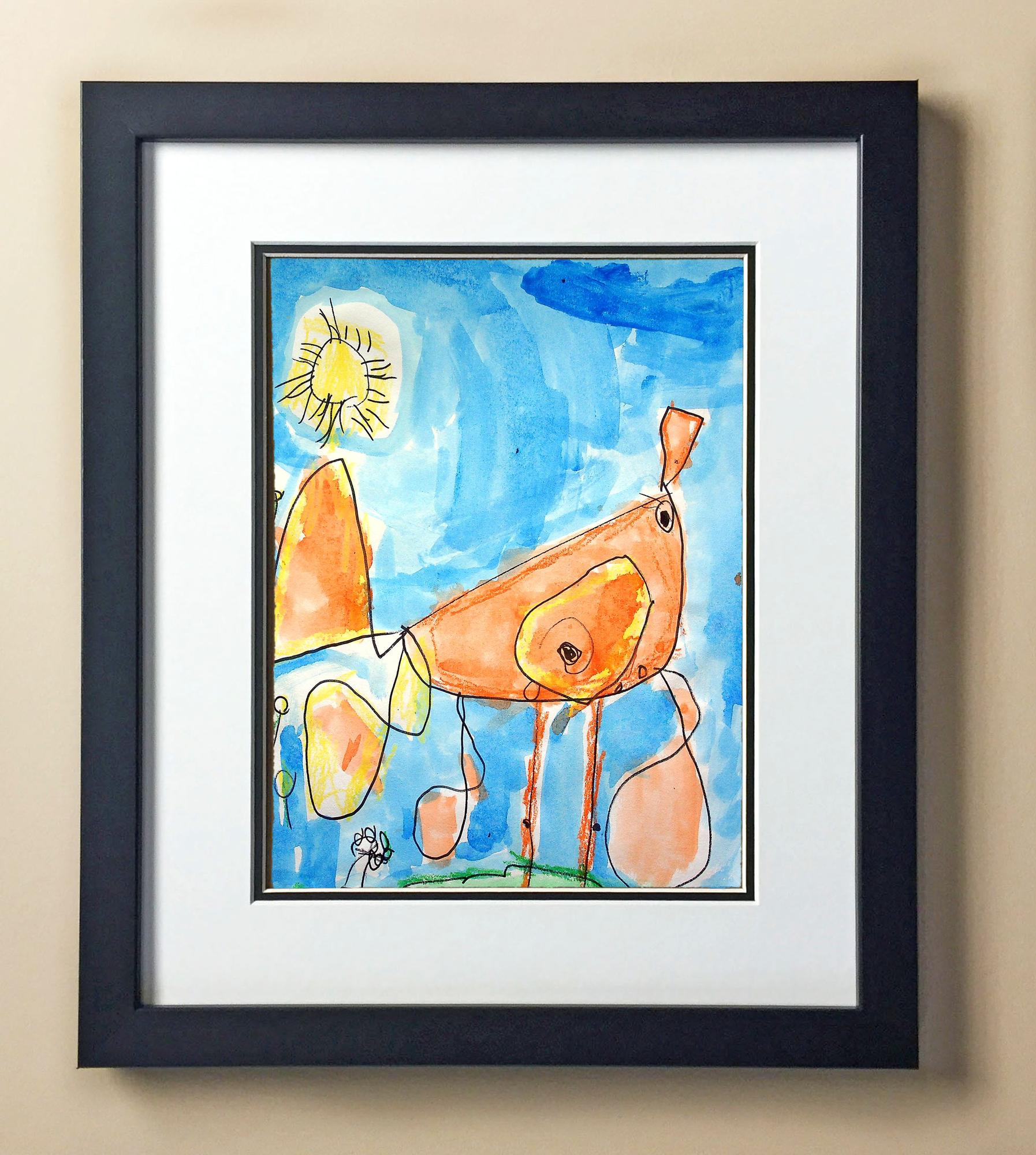Included with the purchase is the Students Artwork, Frame, double matboard, shatter proof plexiglass, and a ready to hang backerboard with turnbuttons