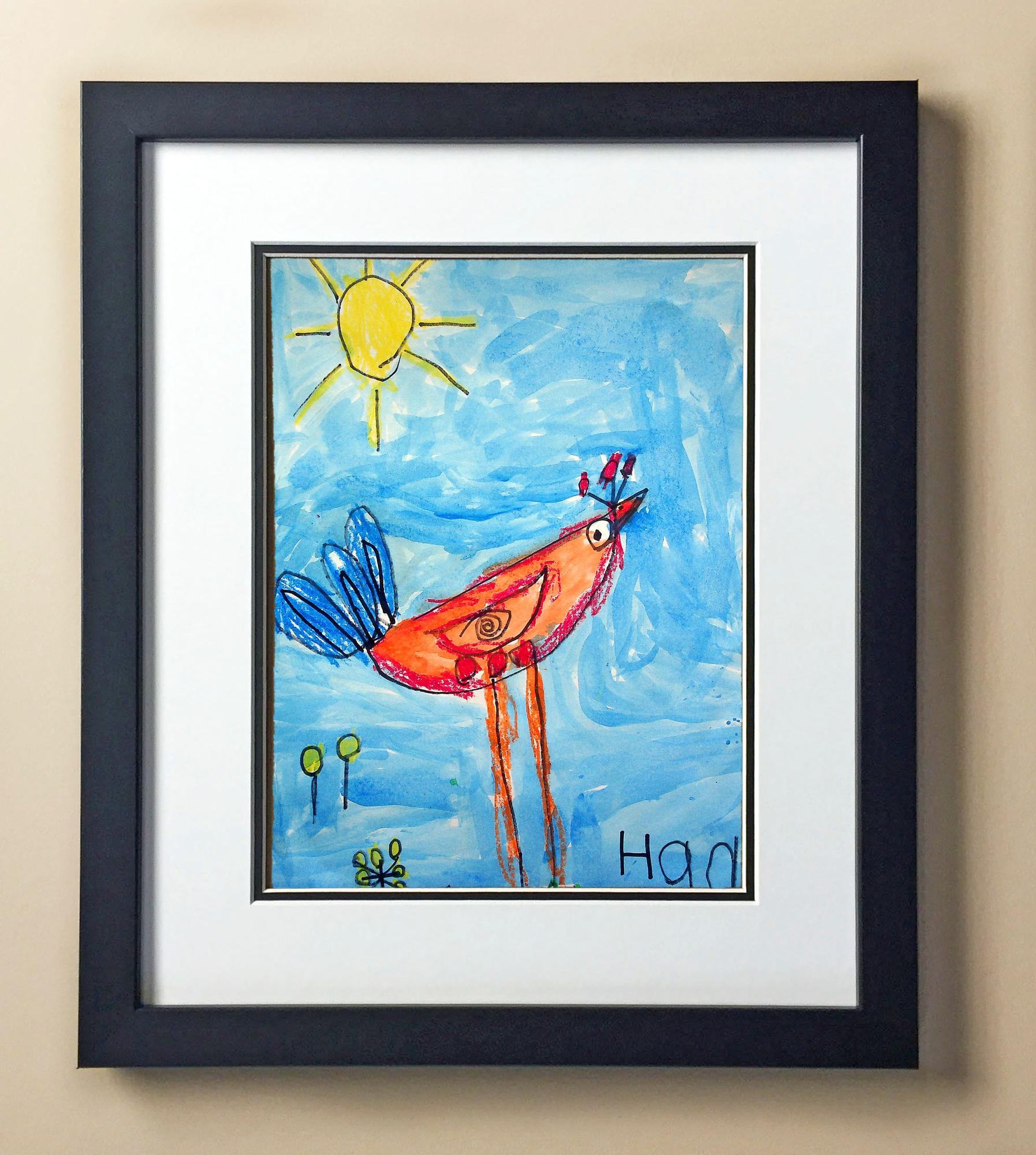 Included with the purchase is the Students Artwork, Frame, double matboard, shatter proof plexiglass, and a ready to hang backerboard with turnbuttons