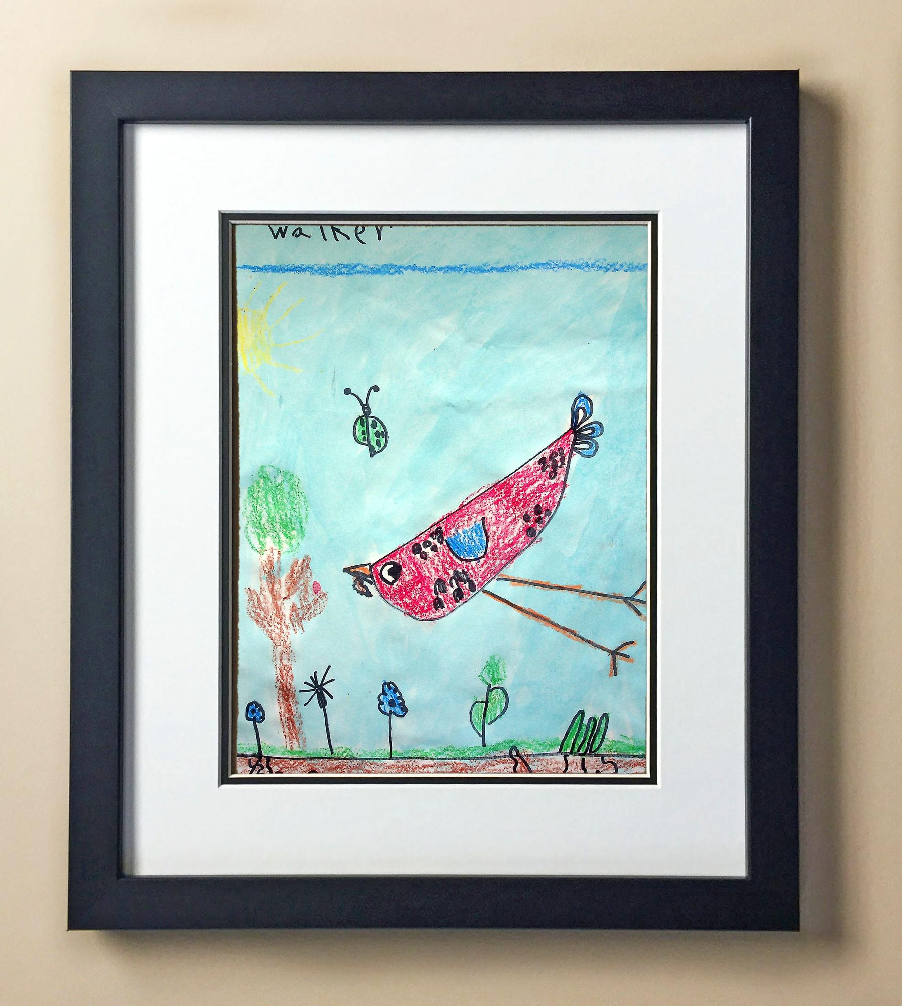 Included with the purchase is the Students Artwork, Frame, double matboard, shatter proof plexiglass, and a ready to hang backerboard with turnbuttons