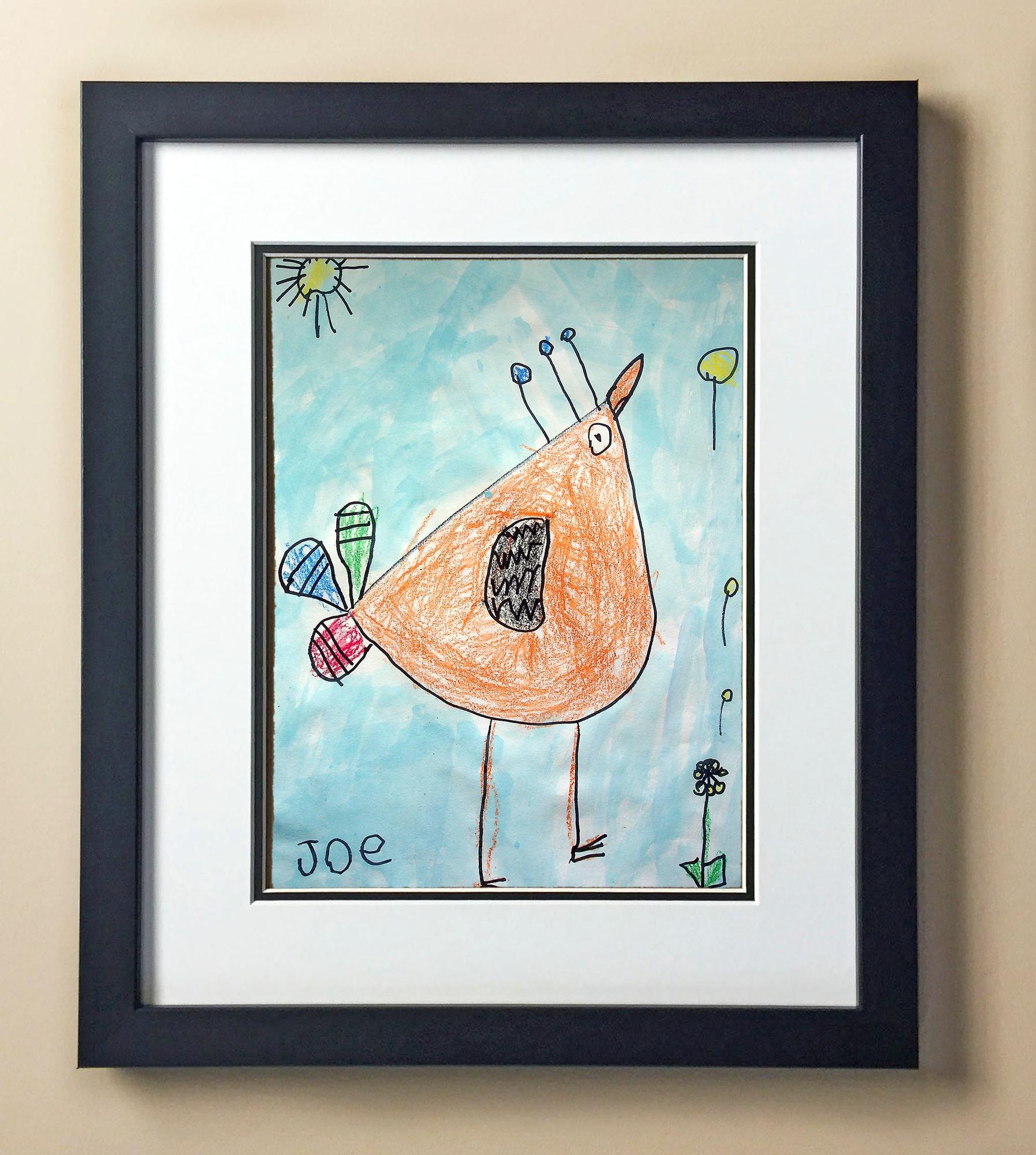 Included with the purchase is the Students Artwork, Frame, double matboard, shatter proof plexiglass, and a ready to hang backerboard with turnbuttons
