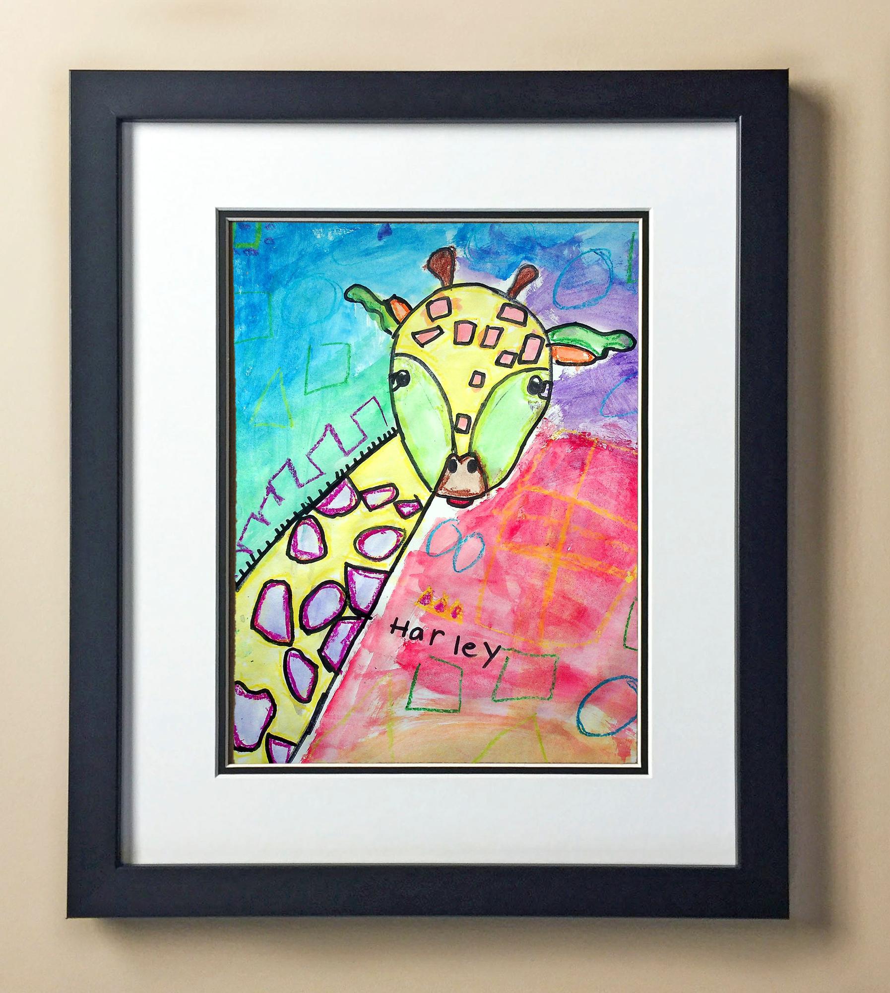 Included with the purchase is the Students Artwork, Frame, double matboard, shatter proof plexiglass, and a ready to hang backerboard with turnbuttons