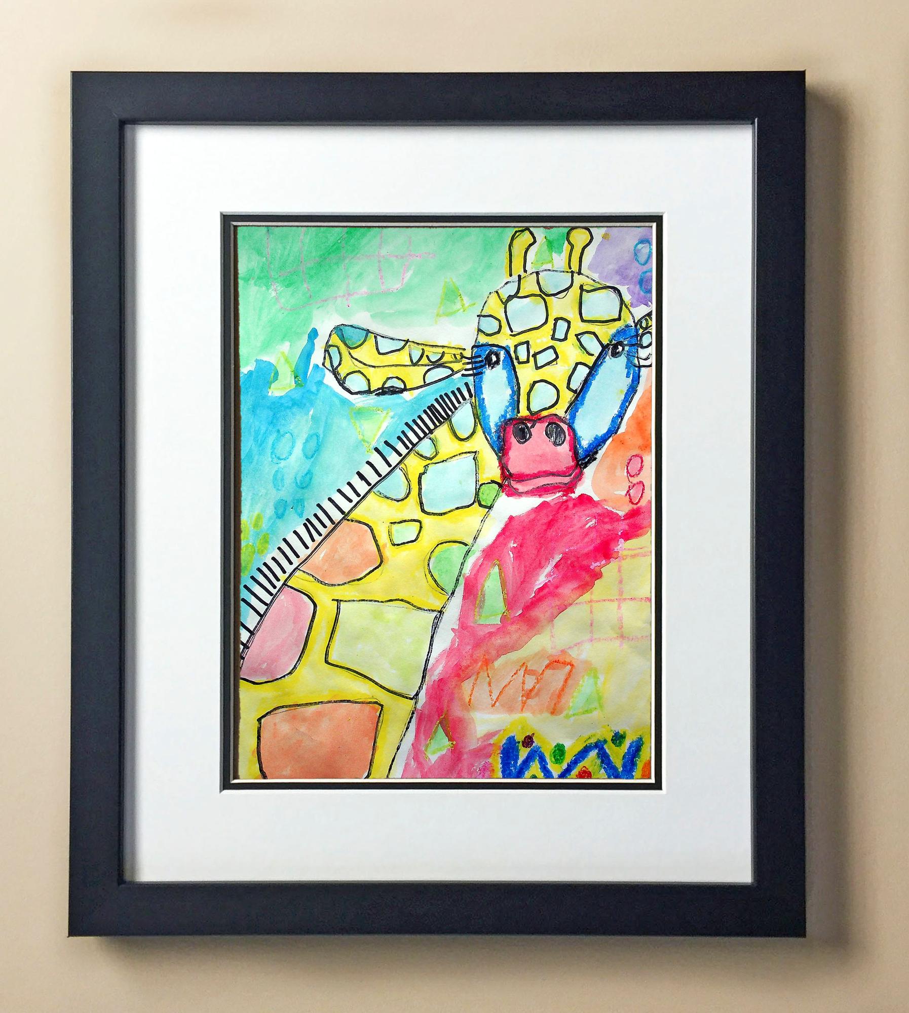 Included with the purchase is the Students Artwork, Frame, double matboard, shatter proof plexiglass, and a ready to hang backerboard with turnbuttons