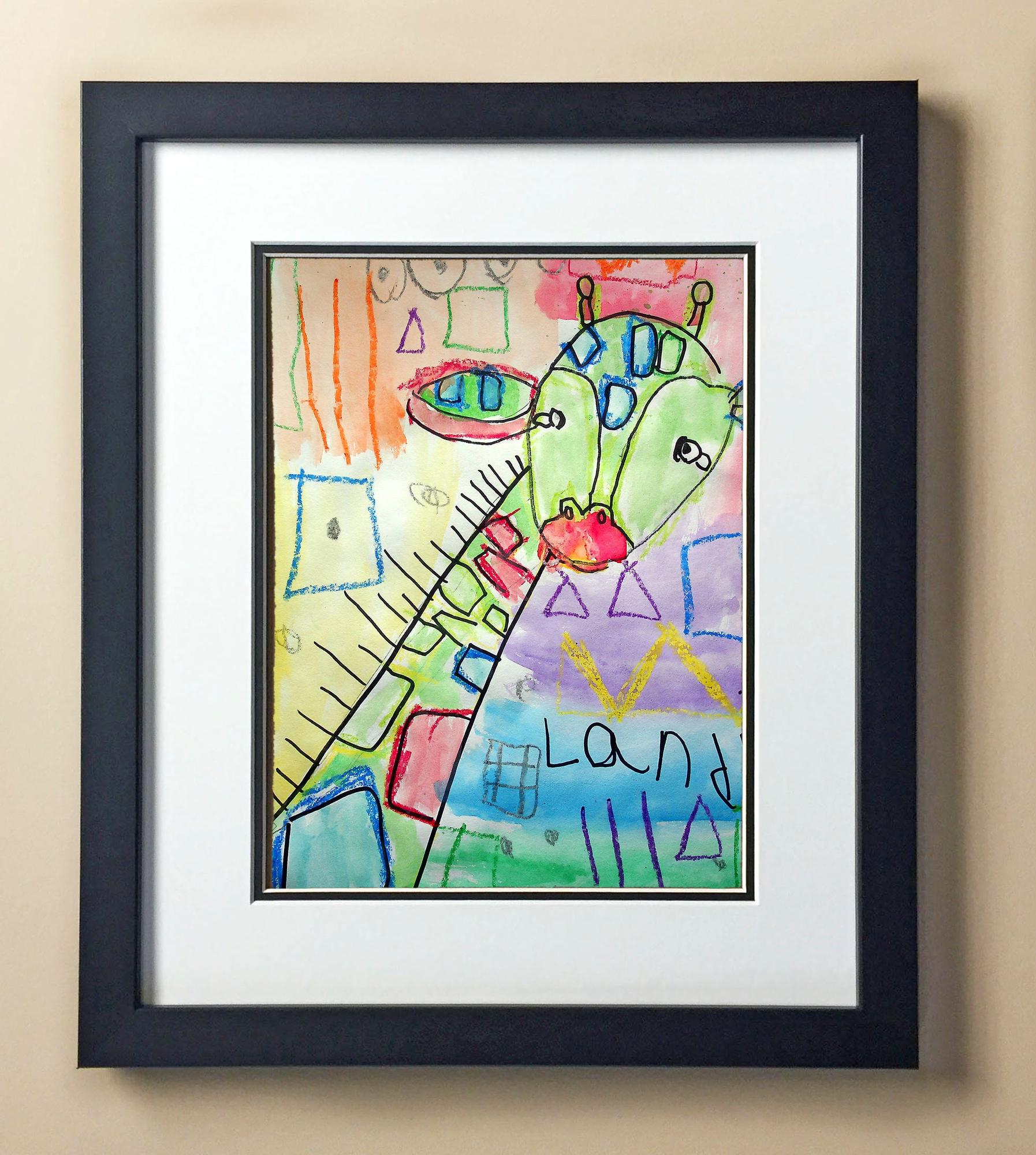 Included with the purchase is the Students Artwork, Frame, double matboard, shatter proof plexiglass, and a ready to hang backerboard with turnbuttons