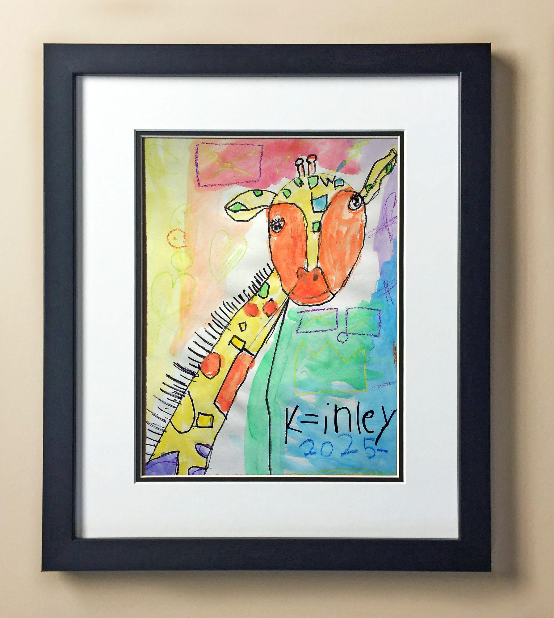 Included with the purchase is the Students Artwork, Frame, double matboard, shatter proof plexiglass, and a ready to hang backerboard with turnbuttons