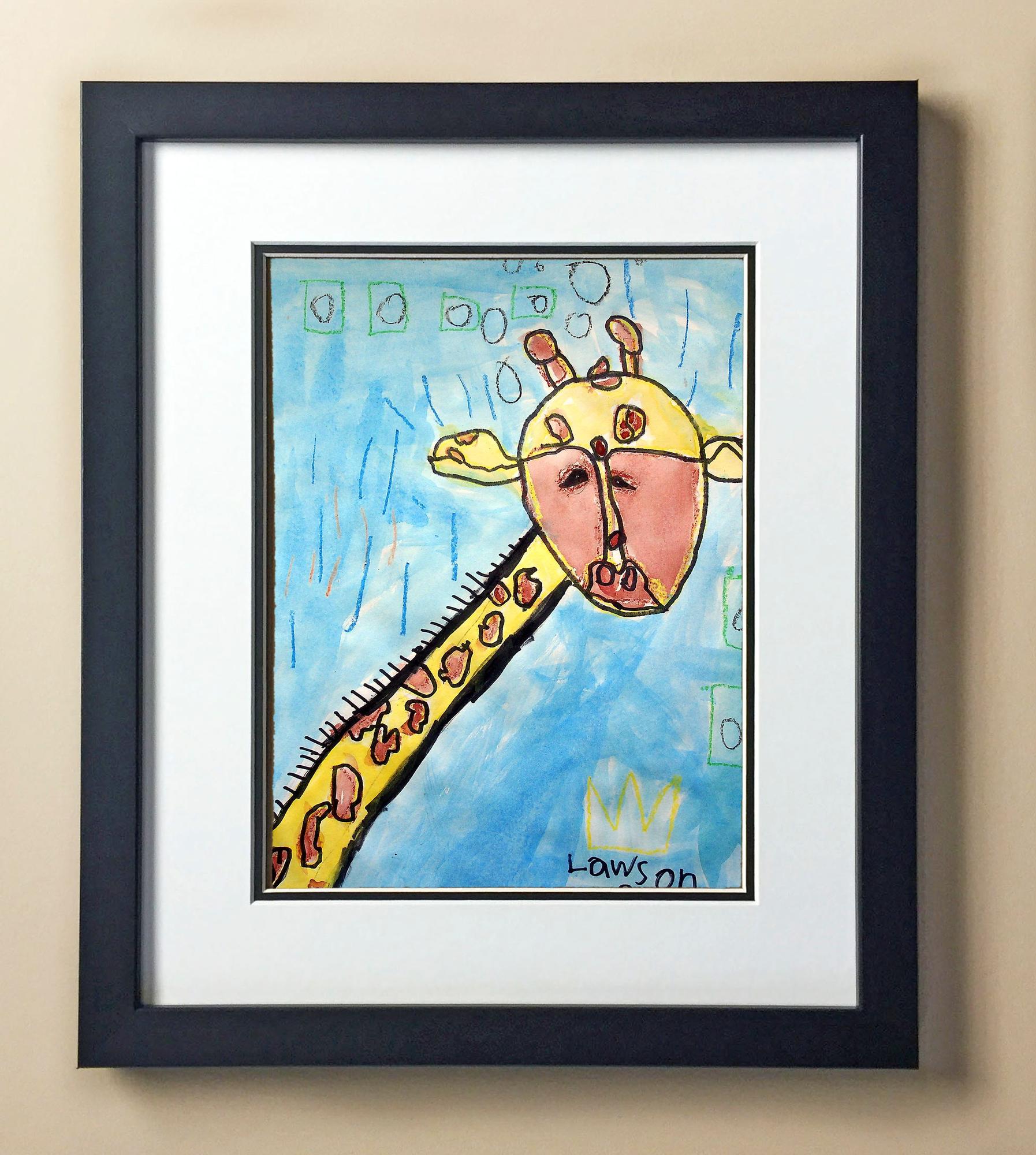 Included with the purchase is the Students Artwork, Frame, double matboard, shatter proof plexiglass, and a ready to hang backerboard with turnbuttons