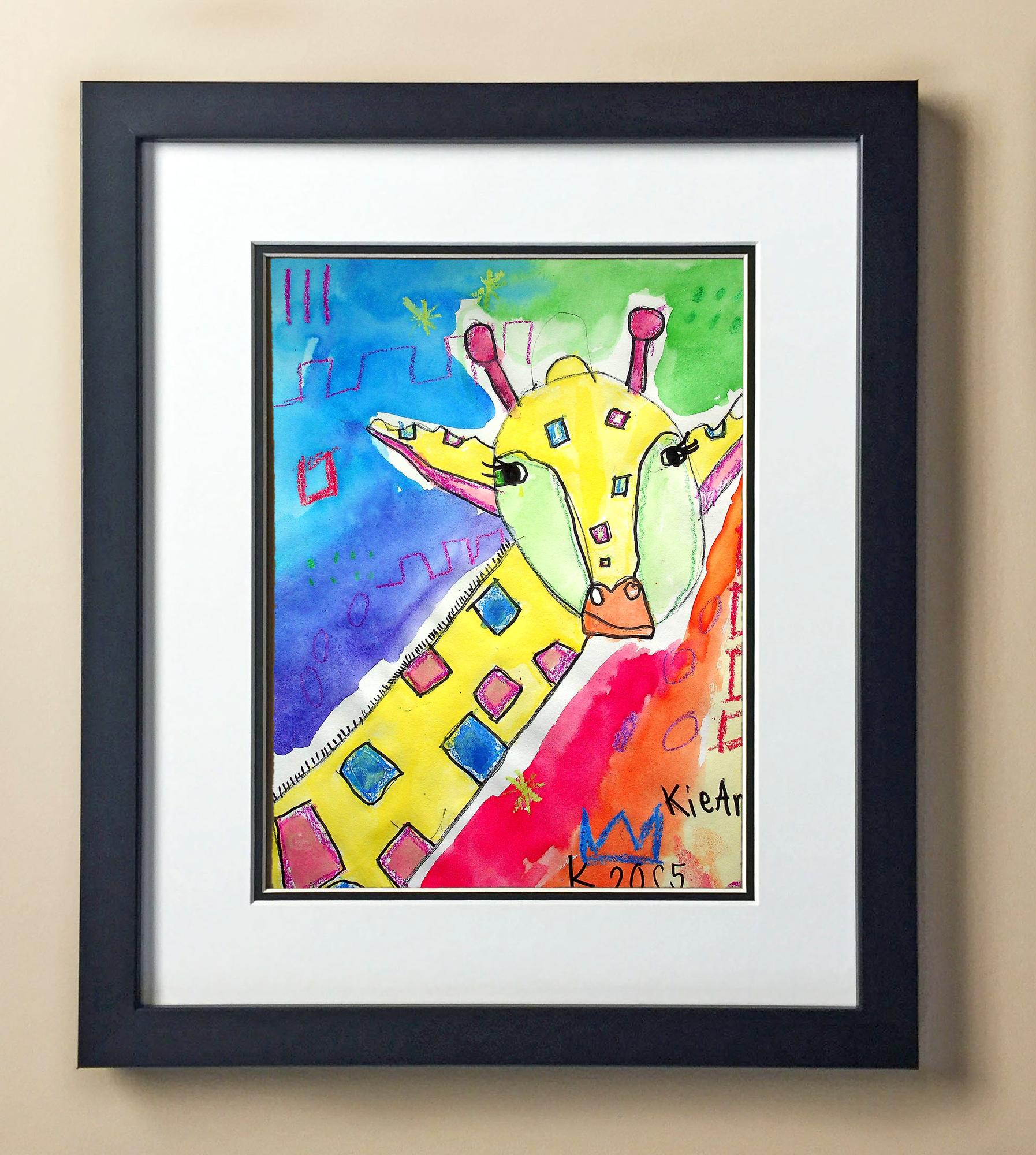 Included with the purchase is the Students Artwork, Frame, double matboard, shatter proof plexiglass, and a ready to hang backerboard with turnbuttons