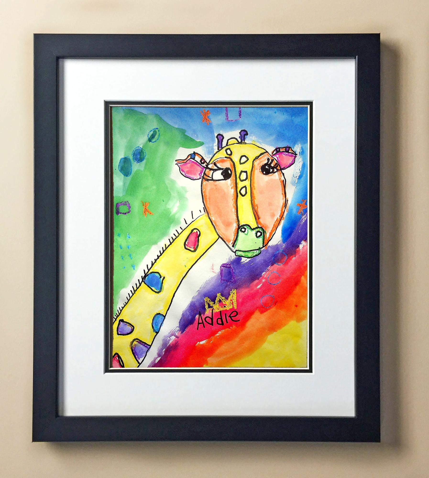 Included with the purchase is the Students Artwork, Frame, double matboard, shatter proof plexiglass, and a ready to hang backerboard with turnbuttons
