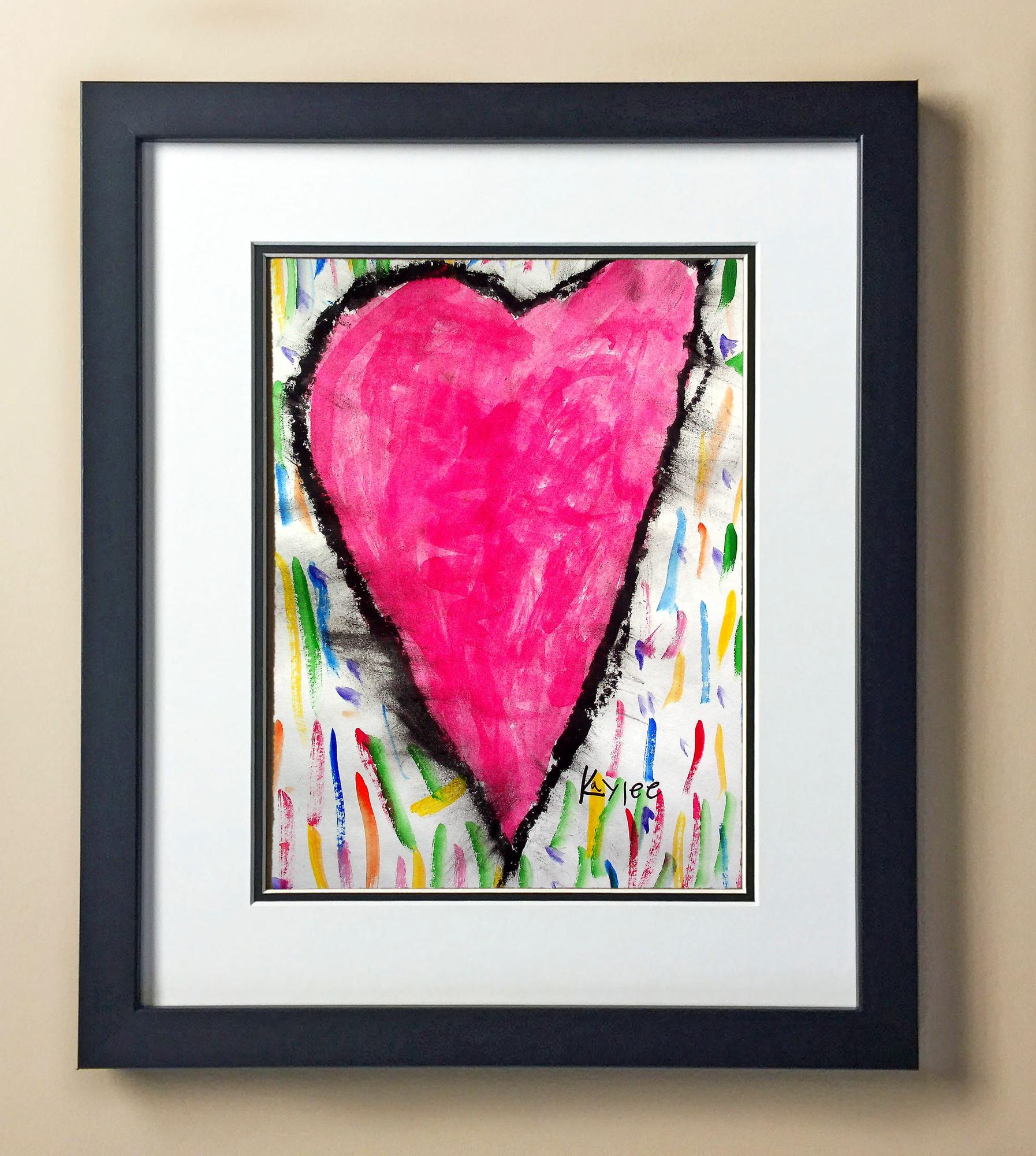 Included with the purchase is the Students Artwork, Frame, double matboard, shatter proof plexiglass, and a ready to hang backerboard with turnbuttons