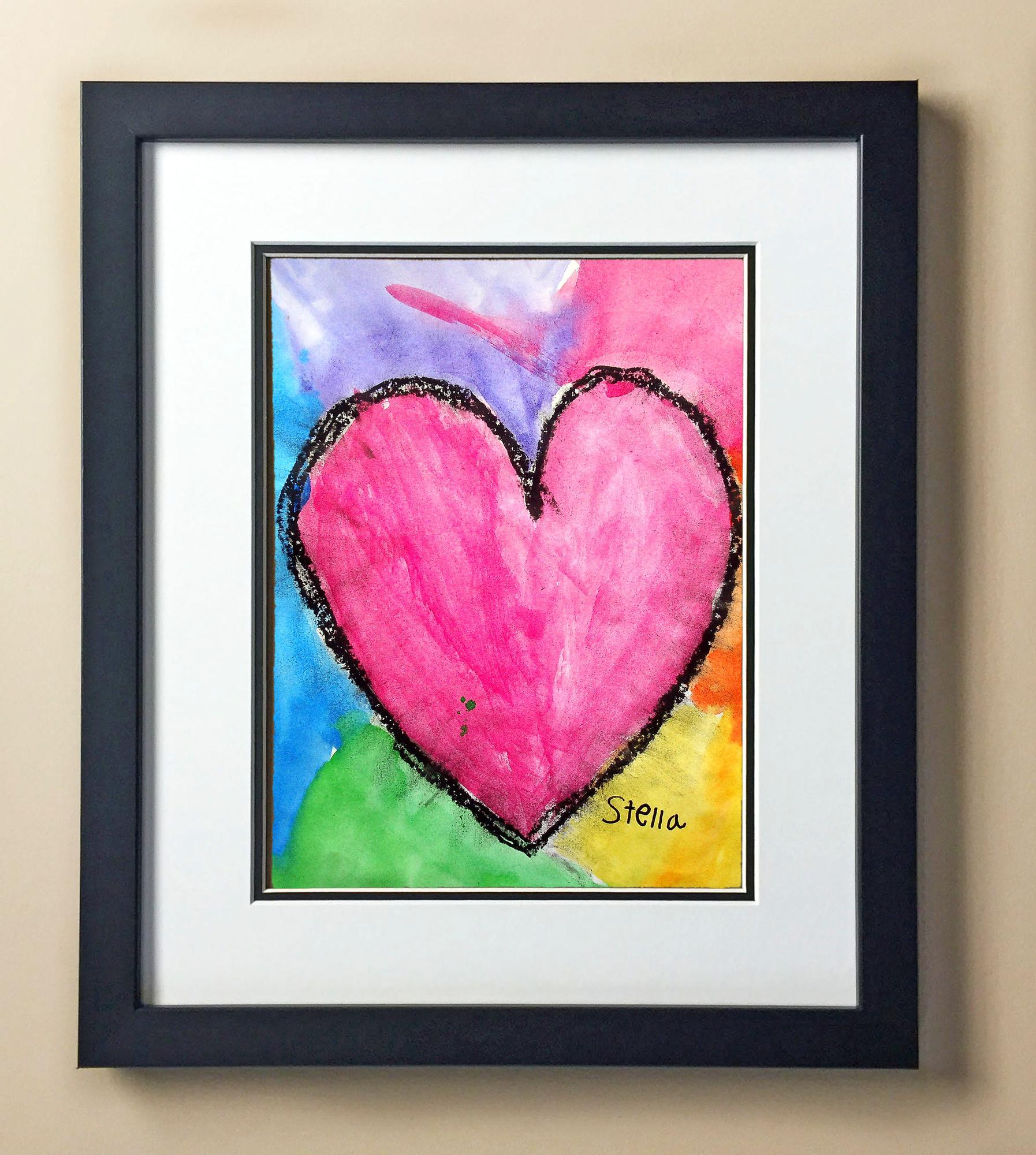 Included with the purchase is the Students Artwork, Frame, double matboard, shatter proof plexiglass, and a ready to hang backerboard with turnbuttons