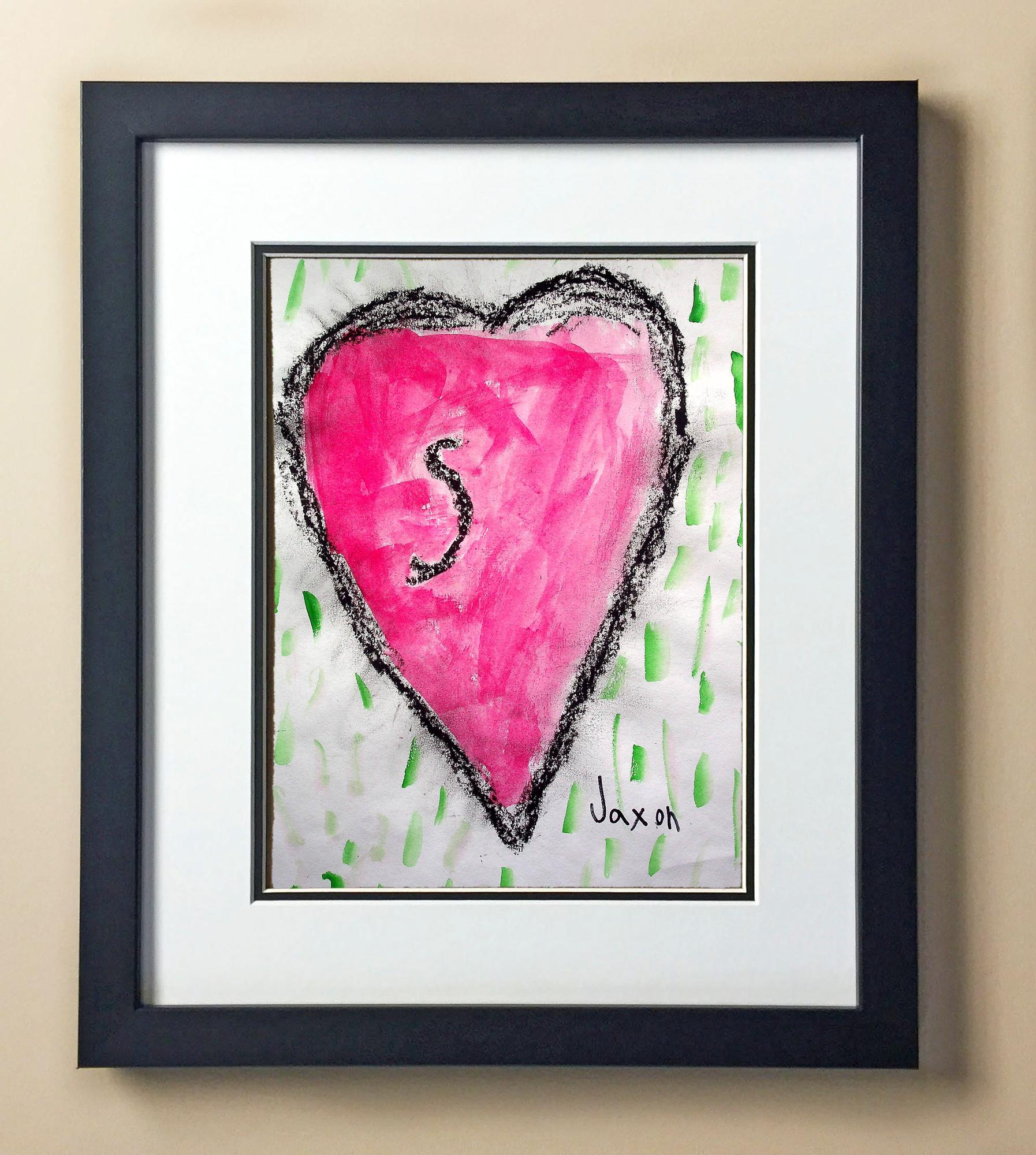 Included with the purchase is the Students Artwork, Frame, double matboard, shatter proof plexiglass, and a ready to hang backerboard with turnbuttons