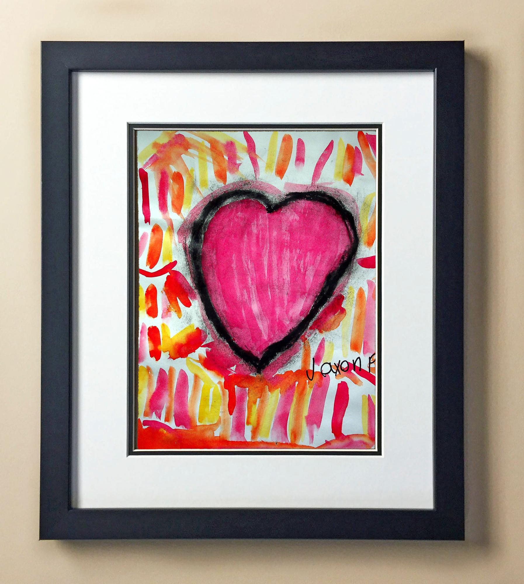 Included with the purchase is the Students Artwork, Frame, double matboard, shatter proof plexiglass, and a ready to hang backerboard with turnbuttons