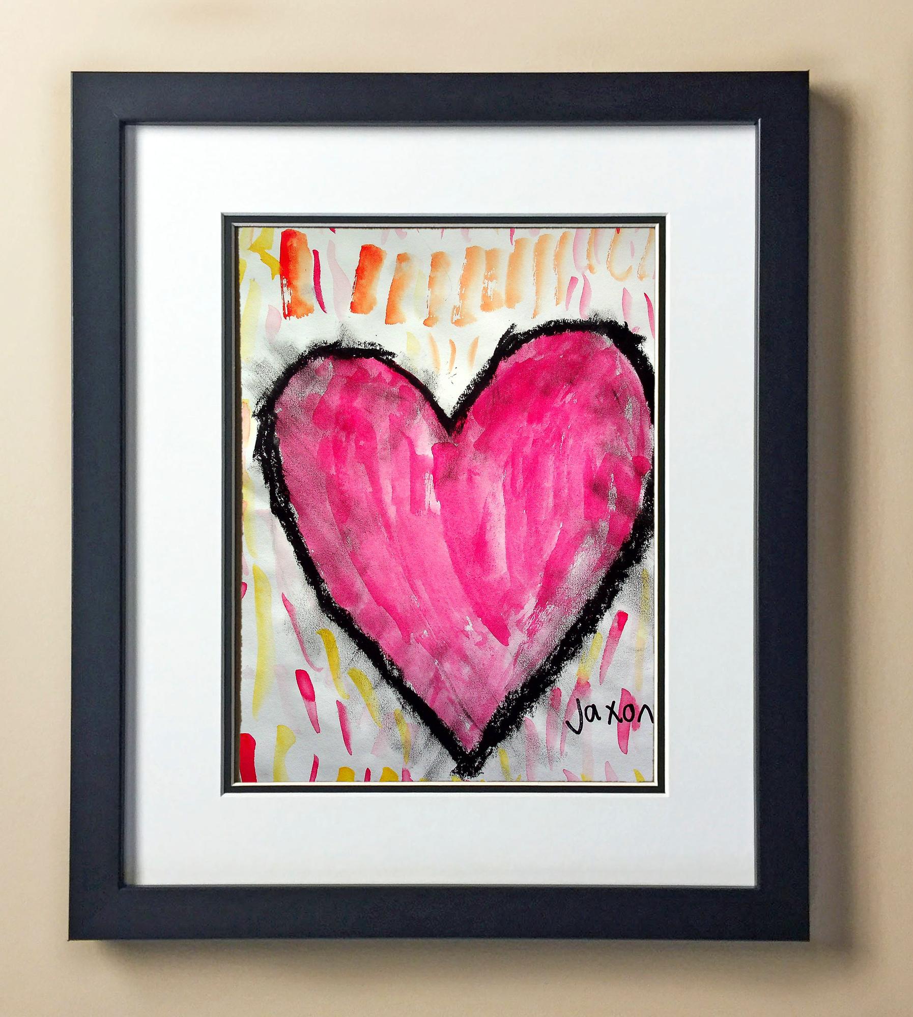 Included with the purchase is the Students Artwork, Frame, double matboard, shatter proof plexiglass, and a ready to hang backerboard with turnbuttons