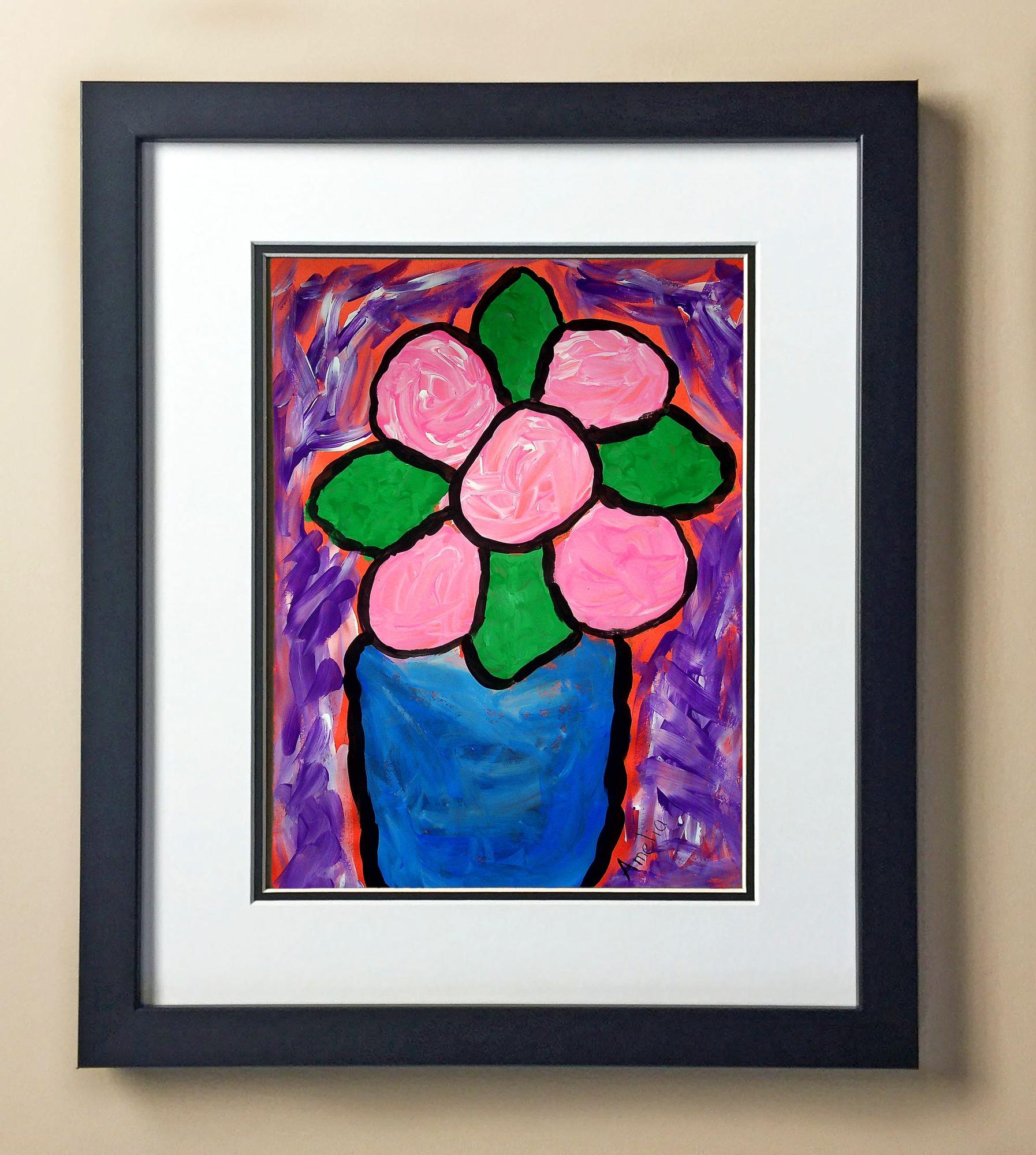 Included with the purchase is the Students Artwork, Frame, double matboard, shatter proof plexiglass, and a ready to hang backerboard with turnbuttons