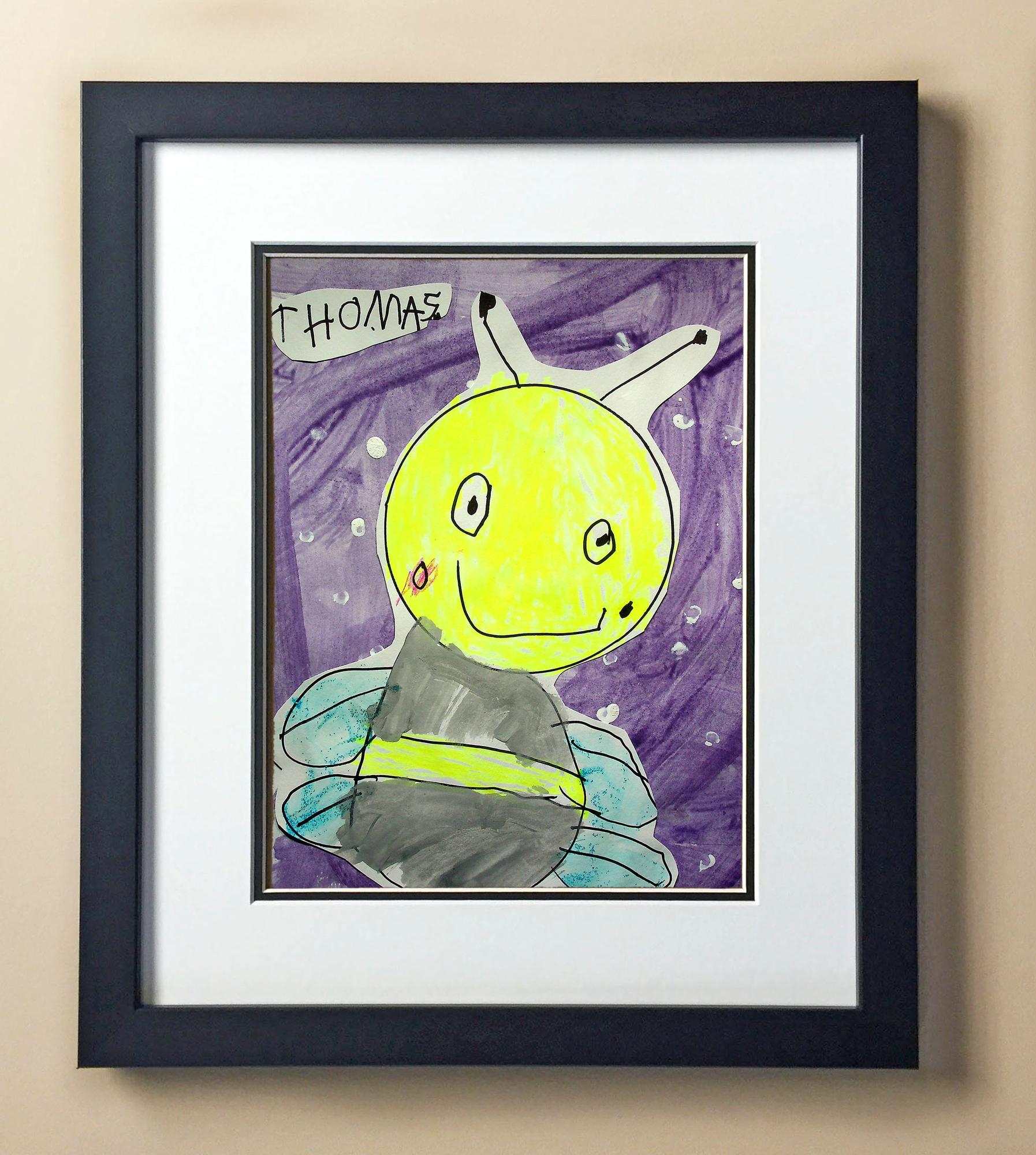 Included with the purchase is the Students Artwork, Frame, double matboard, shatter proof plexiglass, and a ready to hang backerboard with turnbuttons