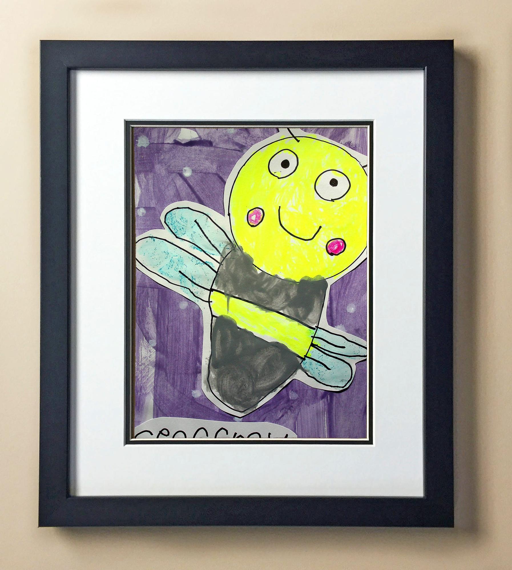 Included with the purchase is the Students Artwork, Frame, double matboard, shatter proof plexiglass, and a ready to hang backerboard with turnbuttons