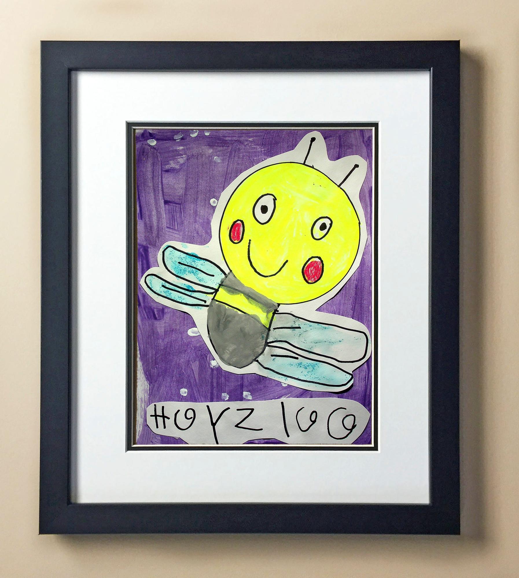 Included with the purchase is the Students Artwork, Frame, double matboard, shatter proof plexiglass, and a ready to hang backerboard with turnbuttons