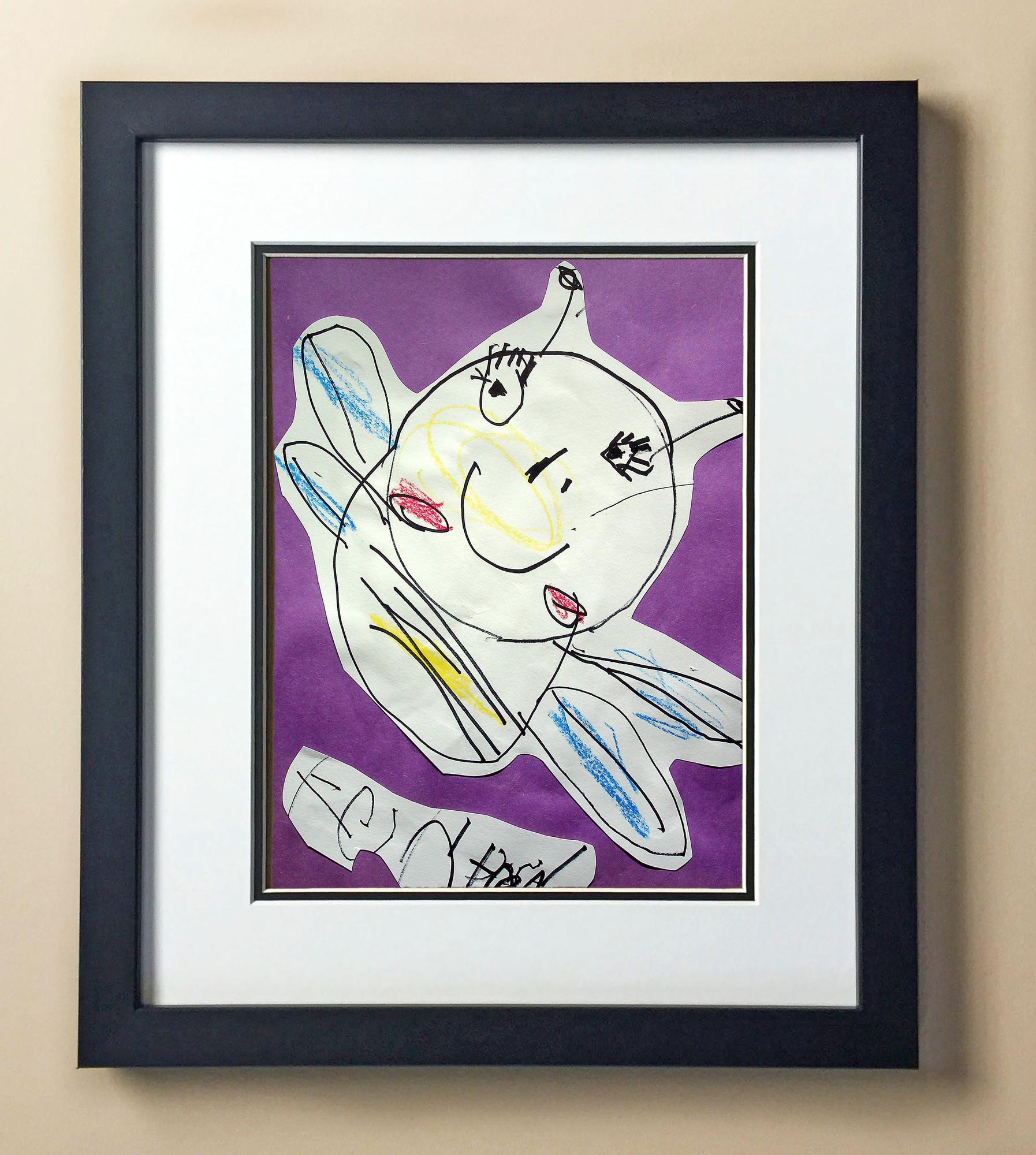 Included with the purchase is the Students Artwork, Frame, double matboard, shatter proof plexiglass, and a ready to hang backerboard with turnbuttons