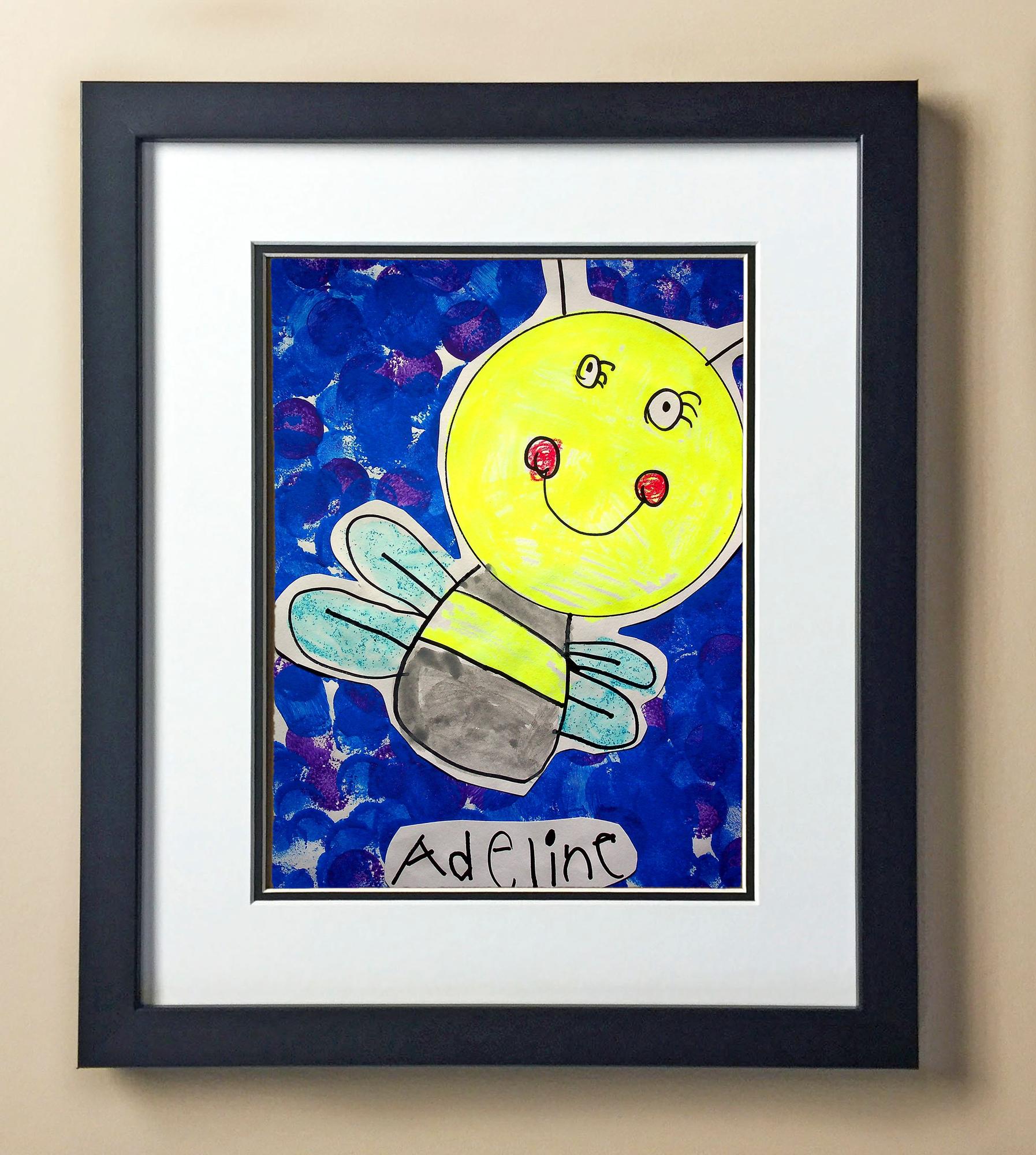 Included with the purchase is the Students Artwork, Frame, double matboard, shatter proof plexiglass, and a ready to hang backerboard with turnbuttons