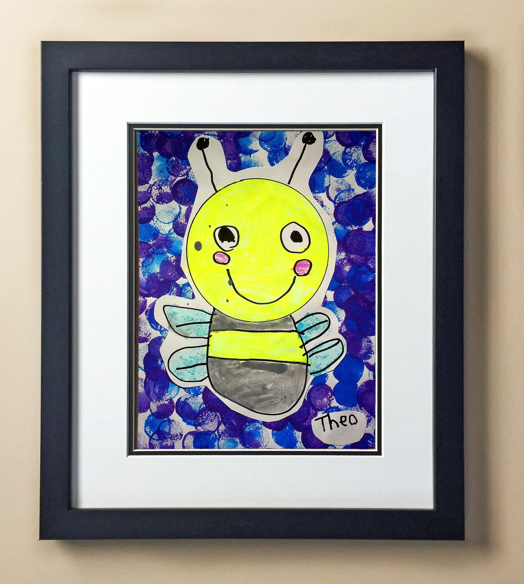 Included with the purchase is the Students Artwork, Frame, double matboard, shatter proof plexiglass, and a ready to hang backerboard with turnbuttons