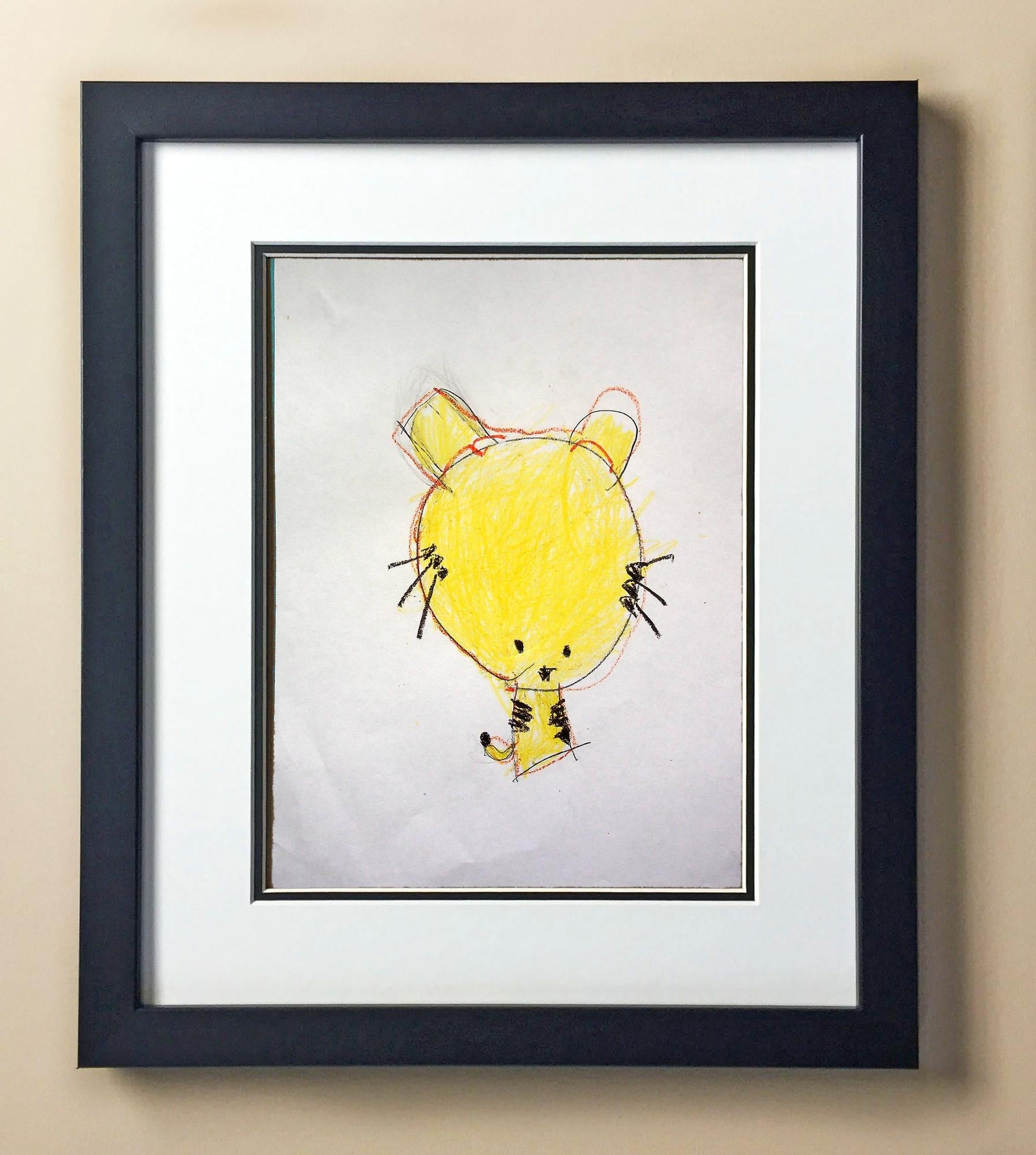 Included with the purchase is the Students Artwork, Frame, double matboard, shatter proof plexiglass, and a ready to hang backerboard with turnbuttons
